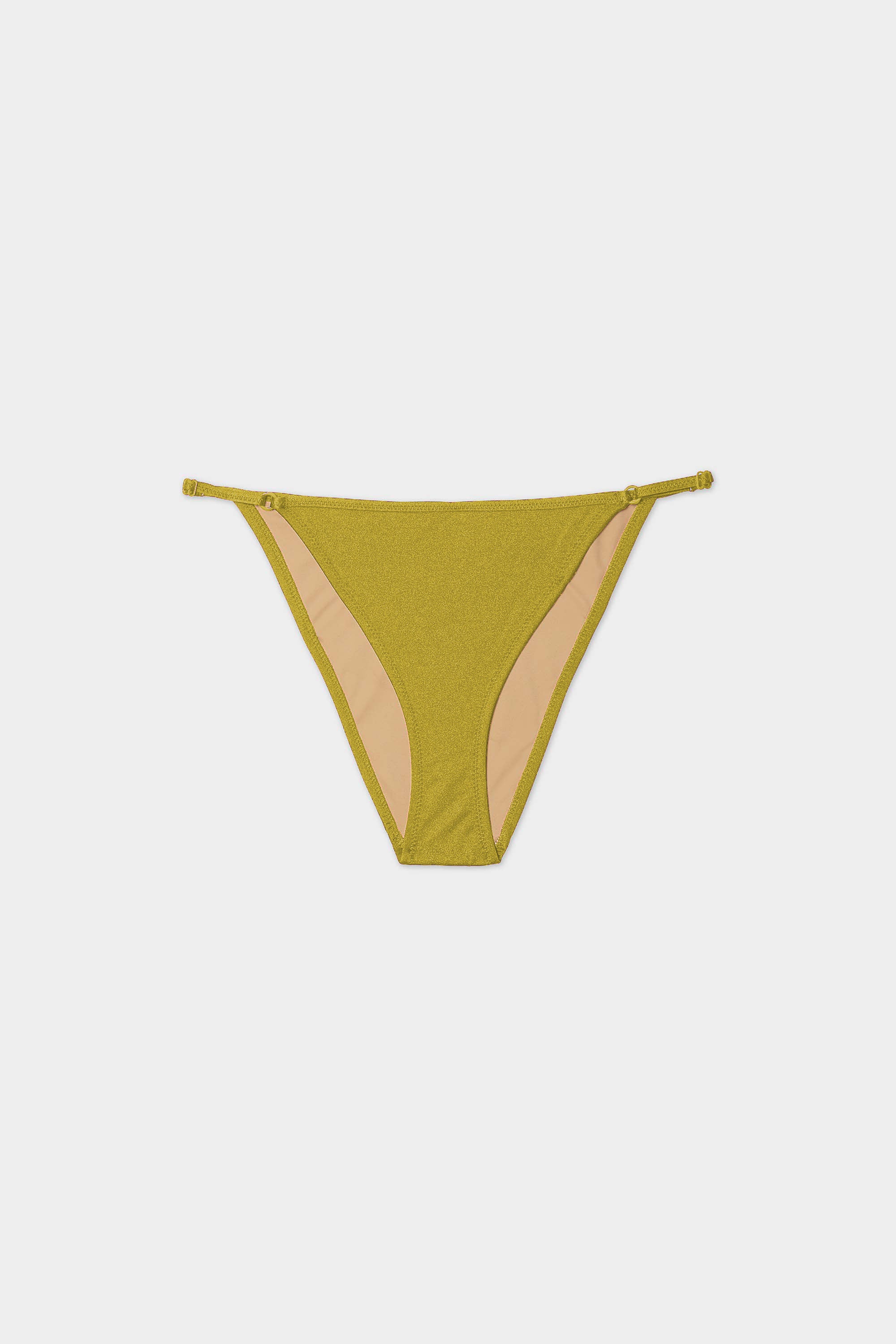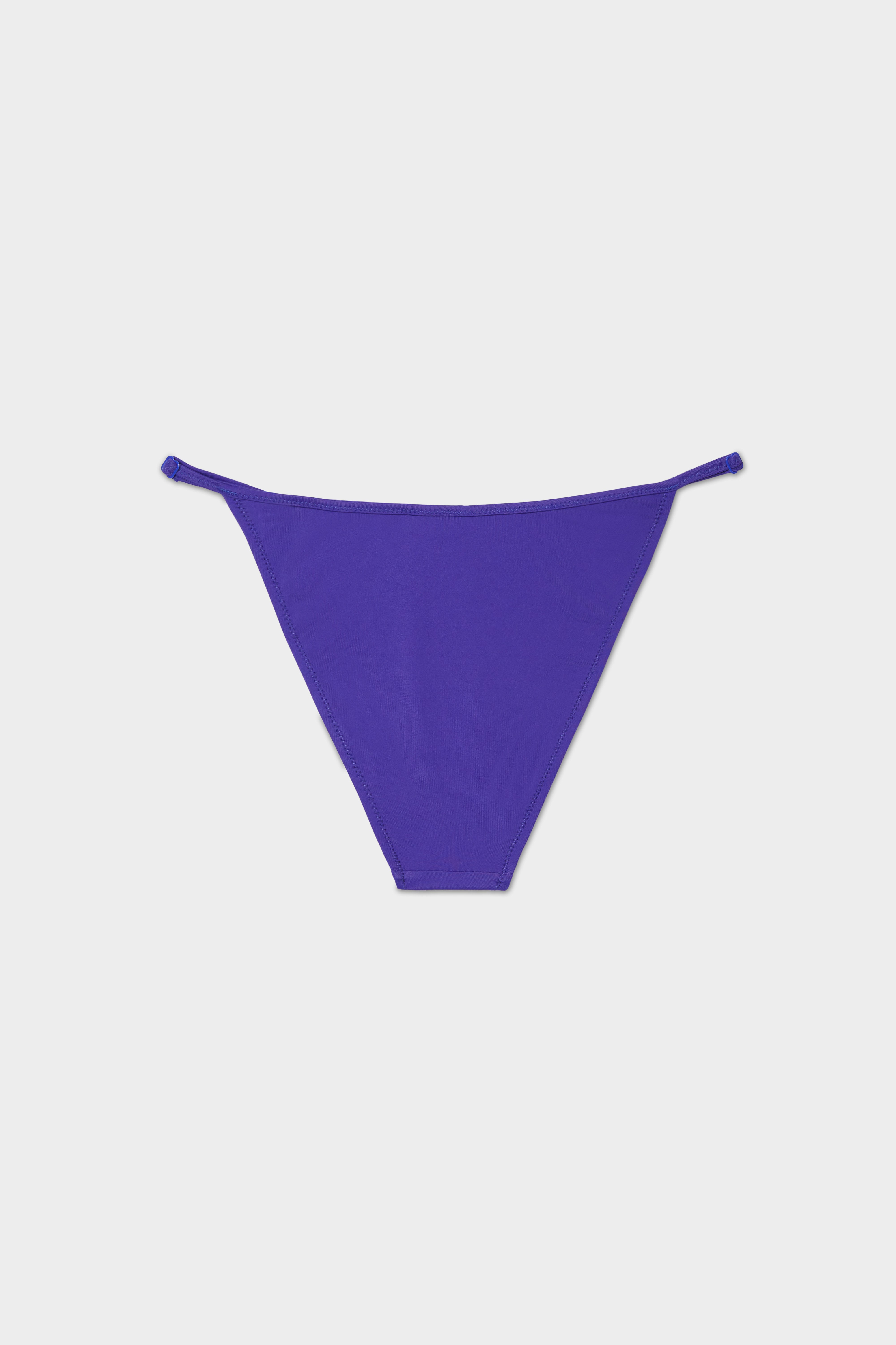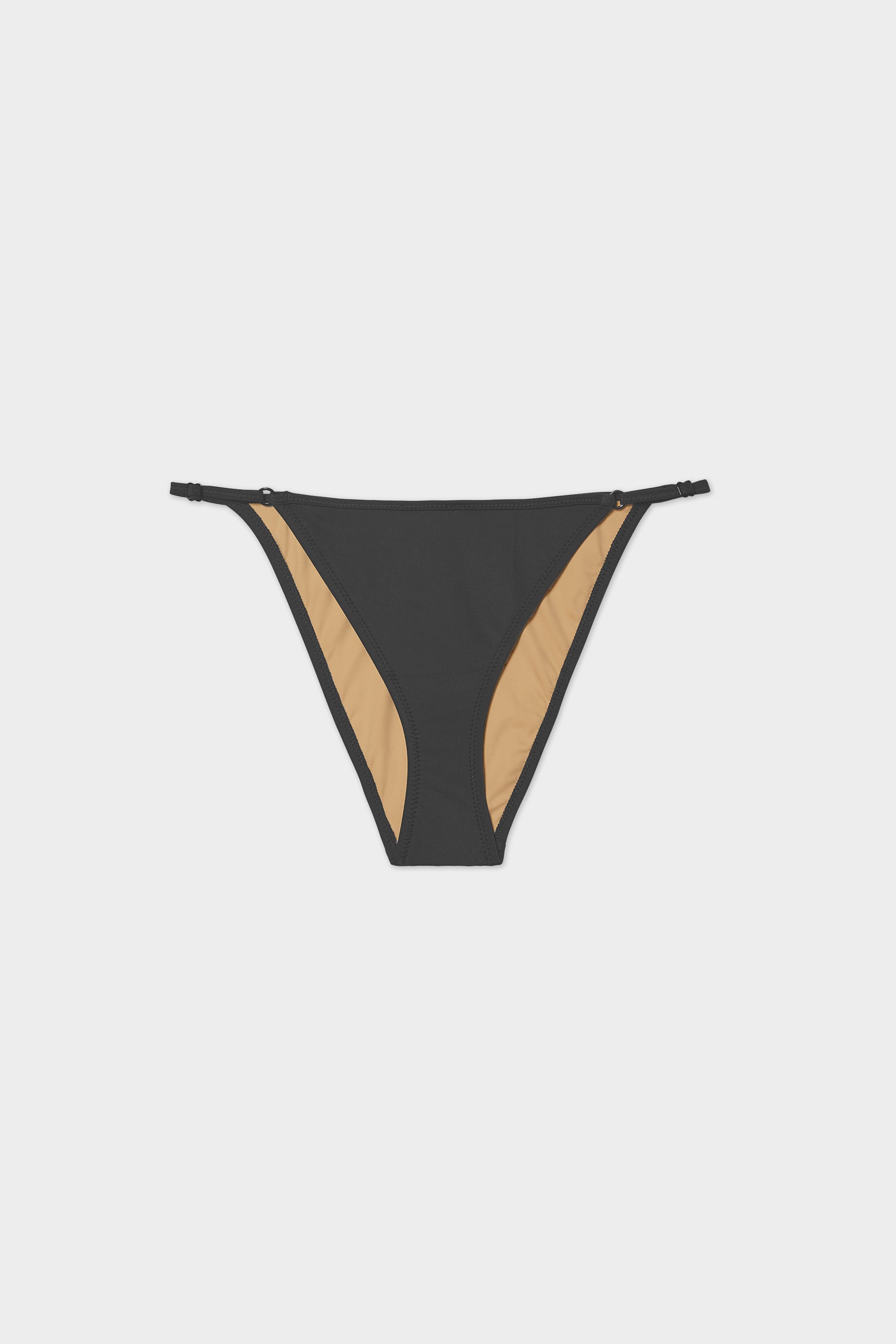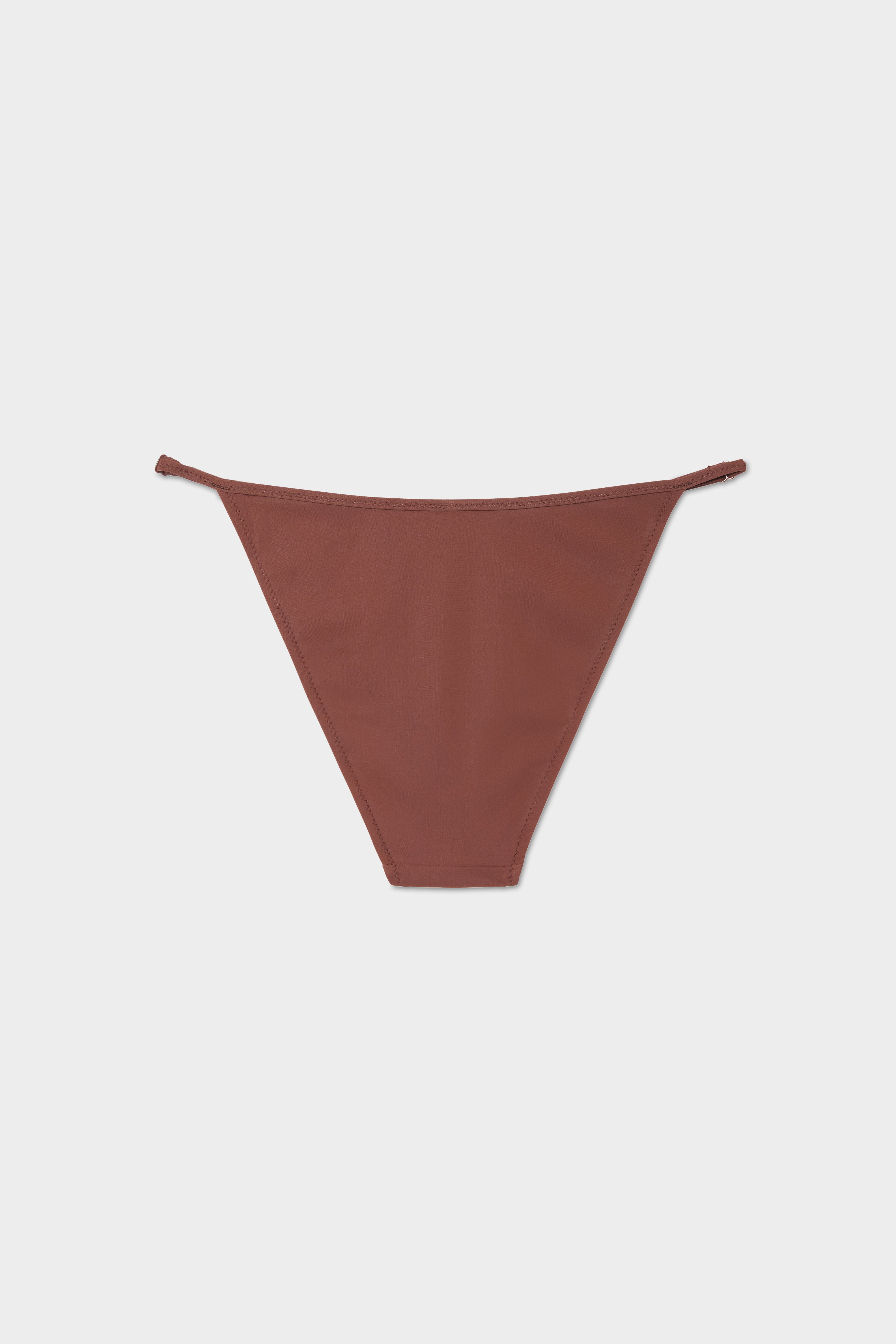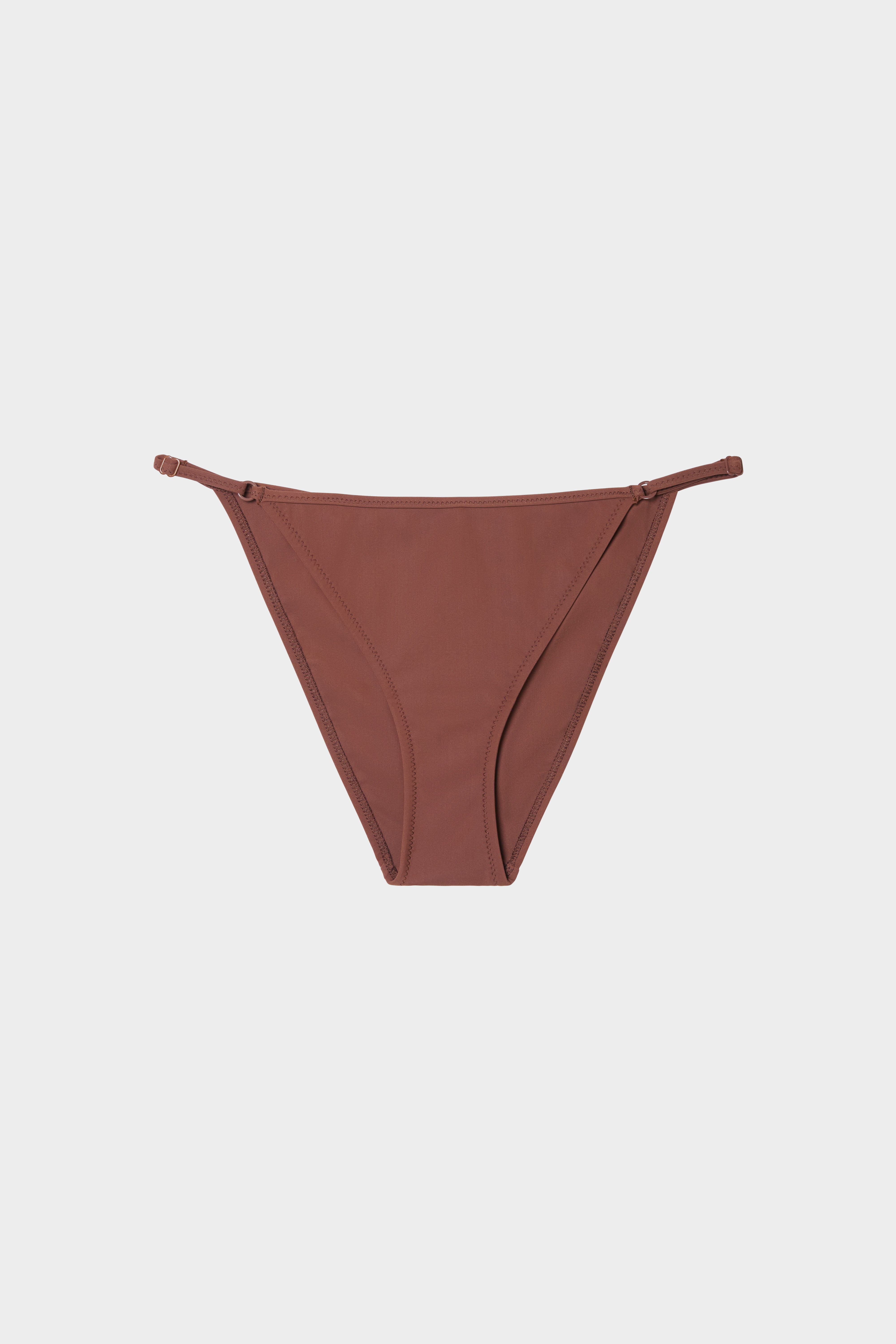 A classic and flattering string bottom, meant to sit anywhere on the hips you prefer. Finished with zig-zag stitching and rings and sliders at for an adjustable fit.