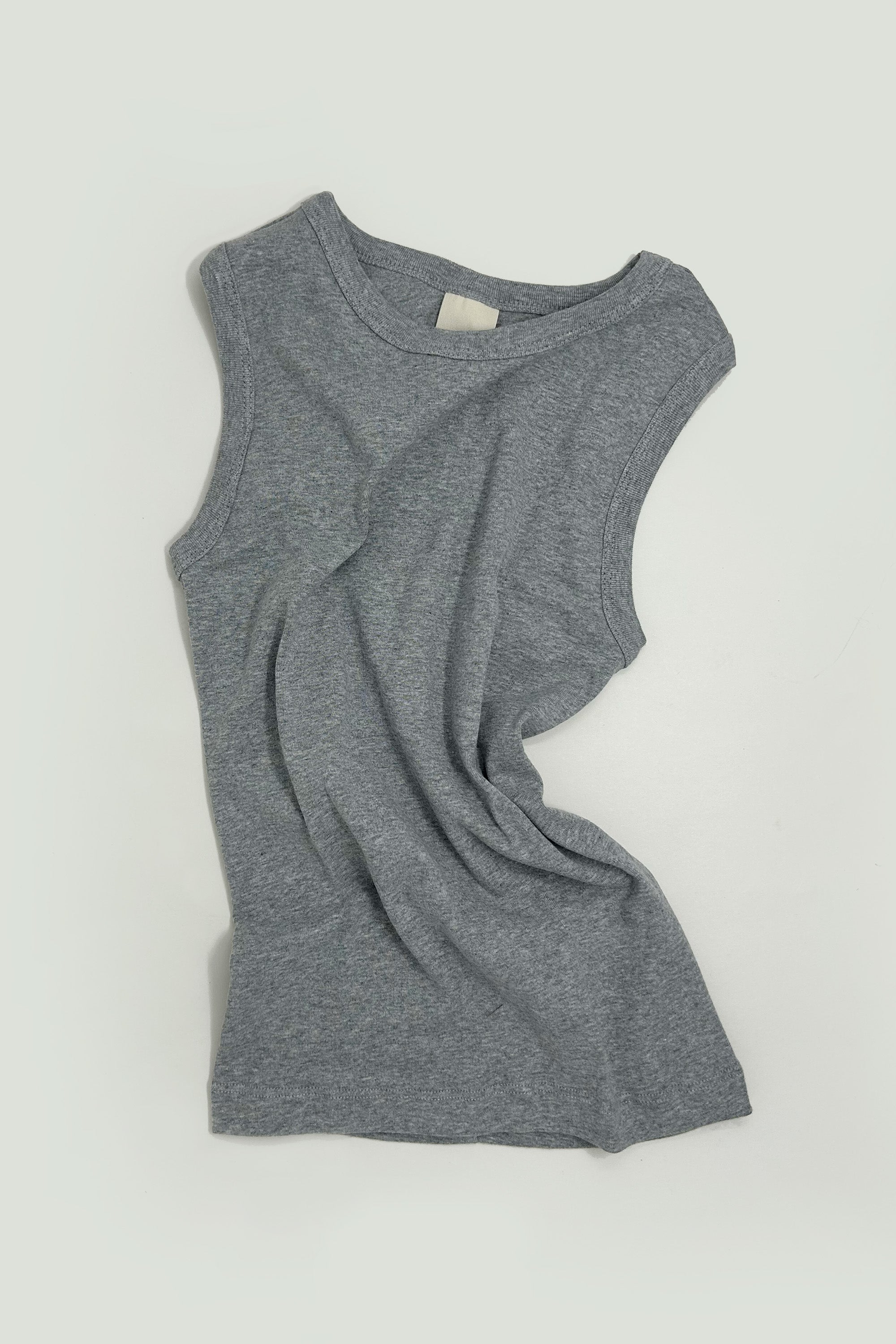 A perfect wide crew neck tank in a super soft medium weight organic cotton rib, featuring 3/4 inch binding around neck and armholes for a more contemporary look.