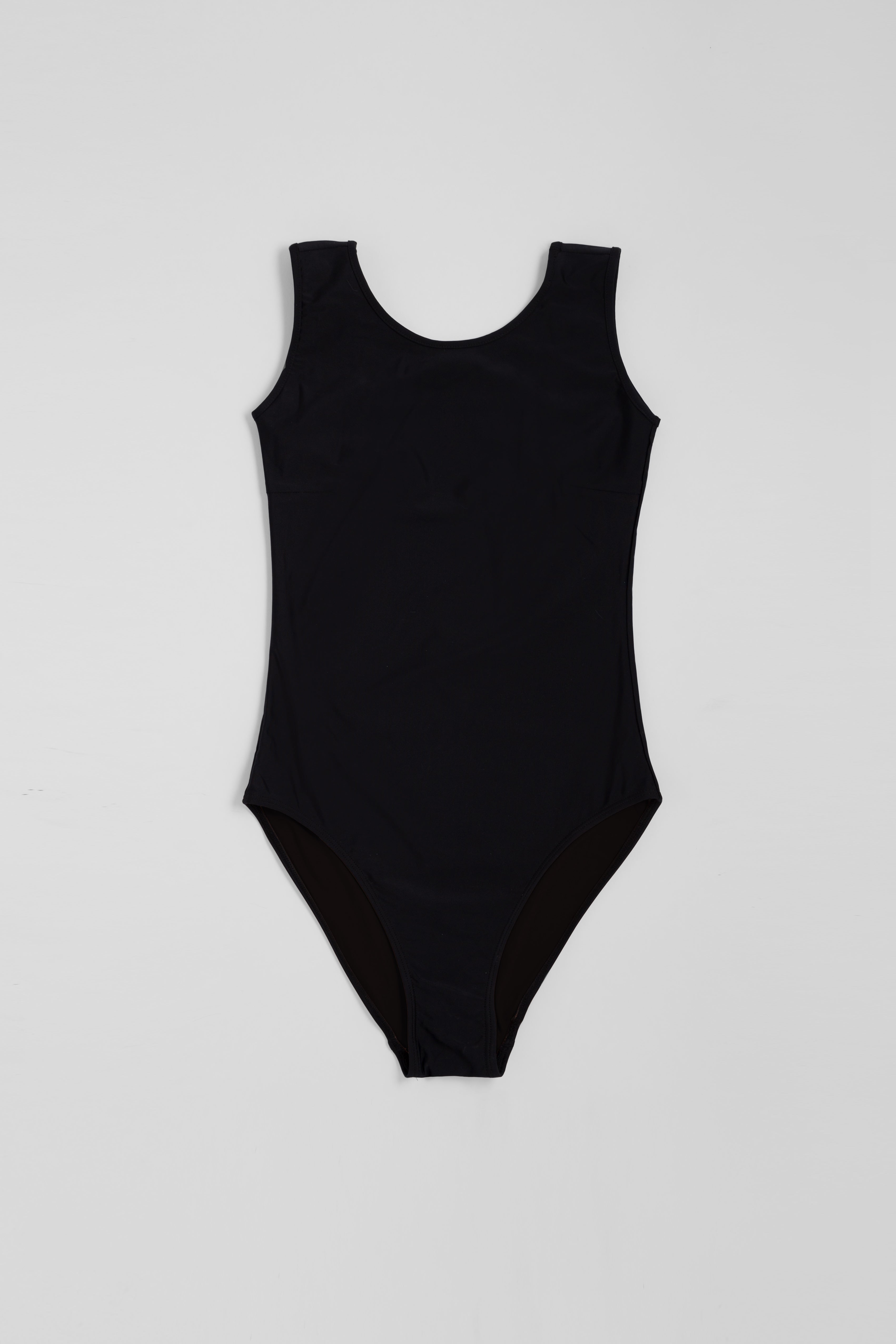 Constructed in our bonded jersey with a high front neckline, modestly scooped out back and darted at the front side seams for bust shape.