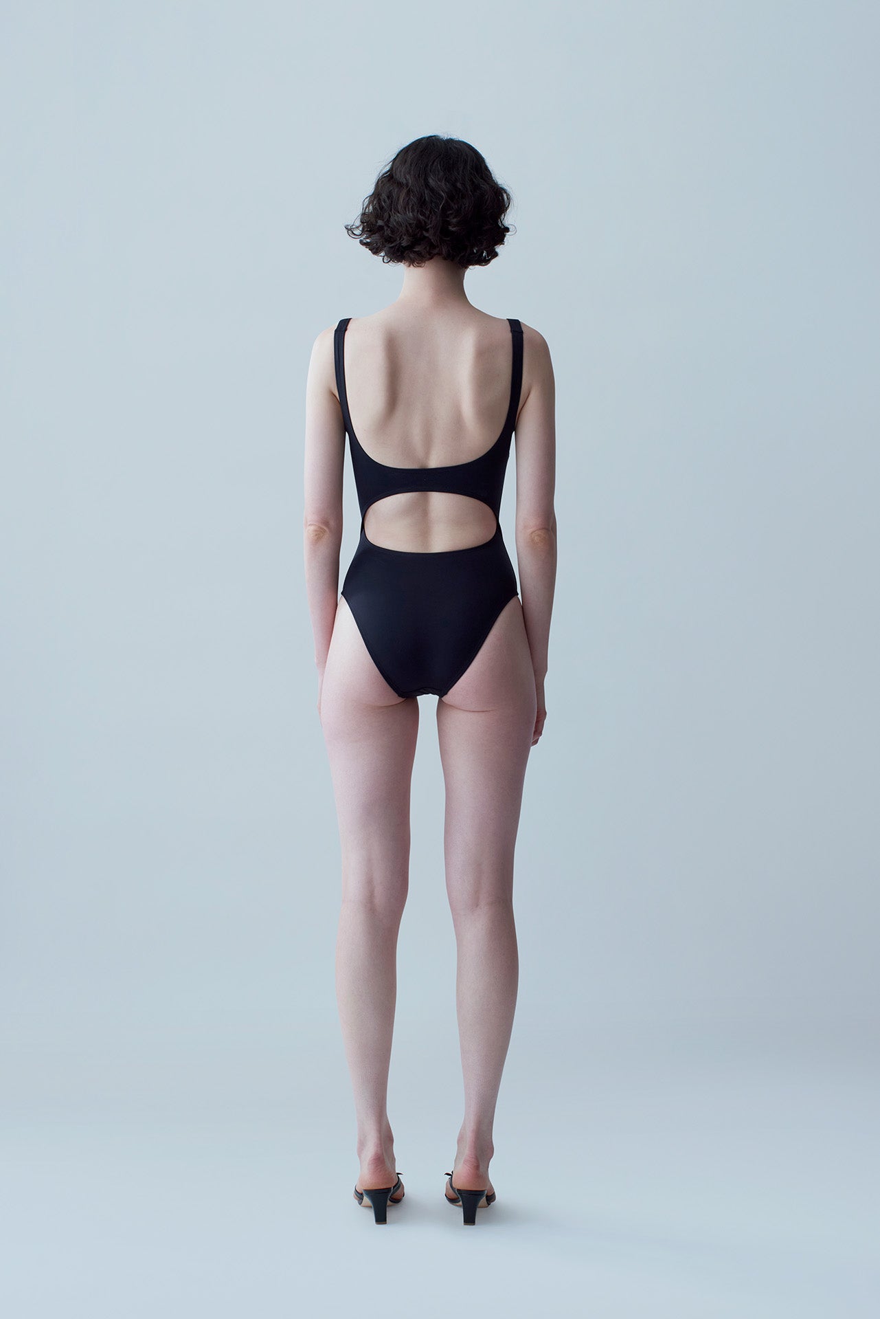 A tank style one piece with a squared neckline and exciting back cut out. Darted at bust seams for versatility with medium bottom coverage.
