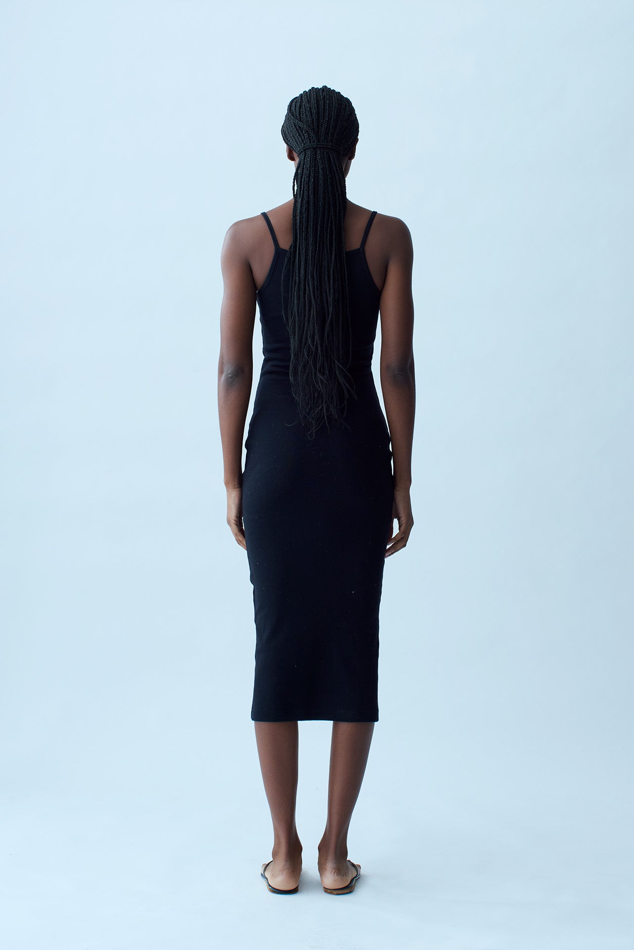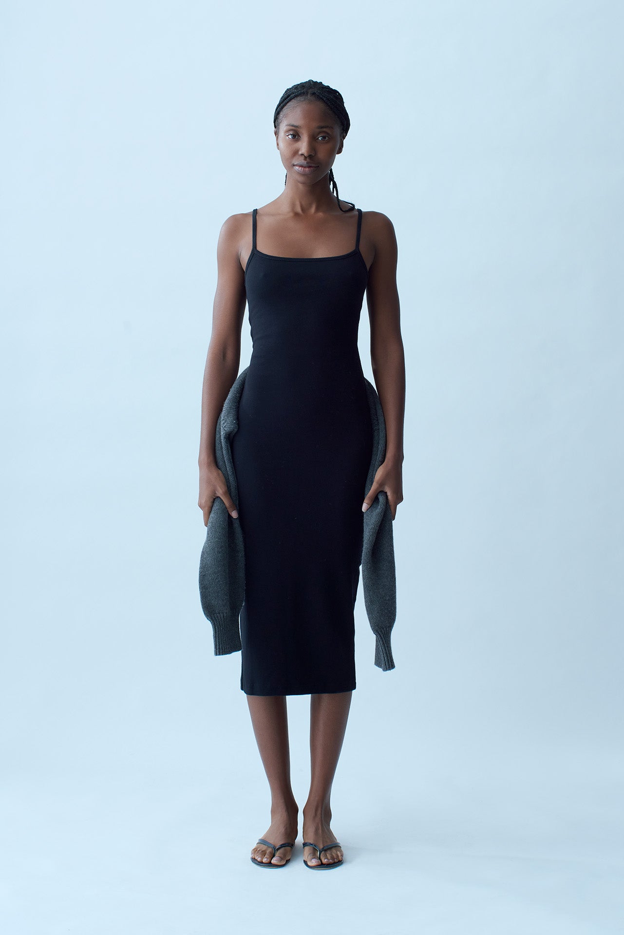 A camisole style tank dress in super soft and structured medium weight organic cotton, the Ginger Dress features a slightly higher back than front and hits perfectly at mid-calf.