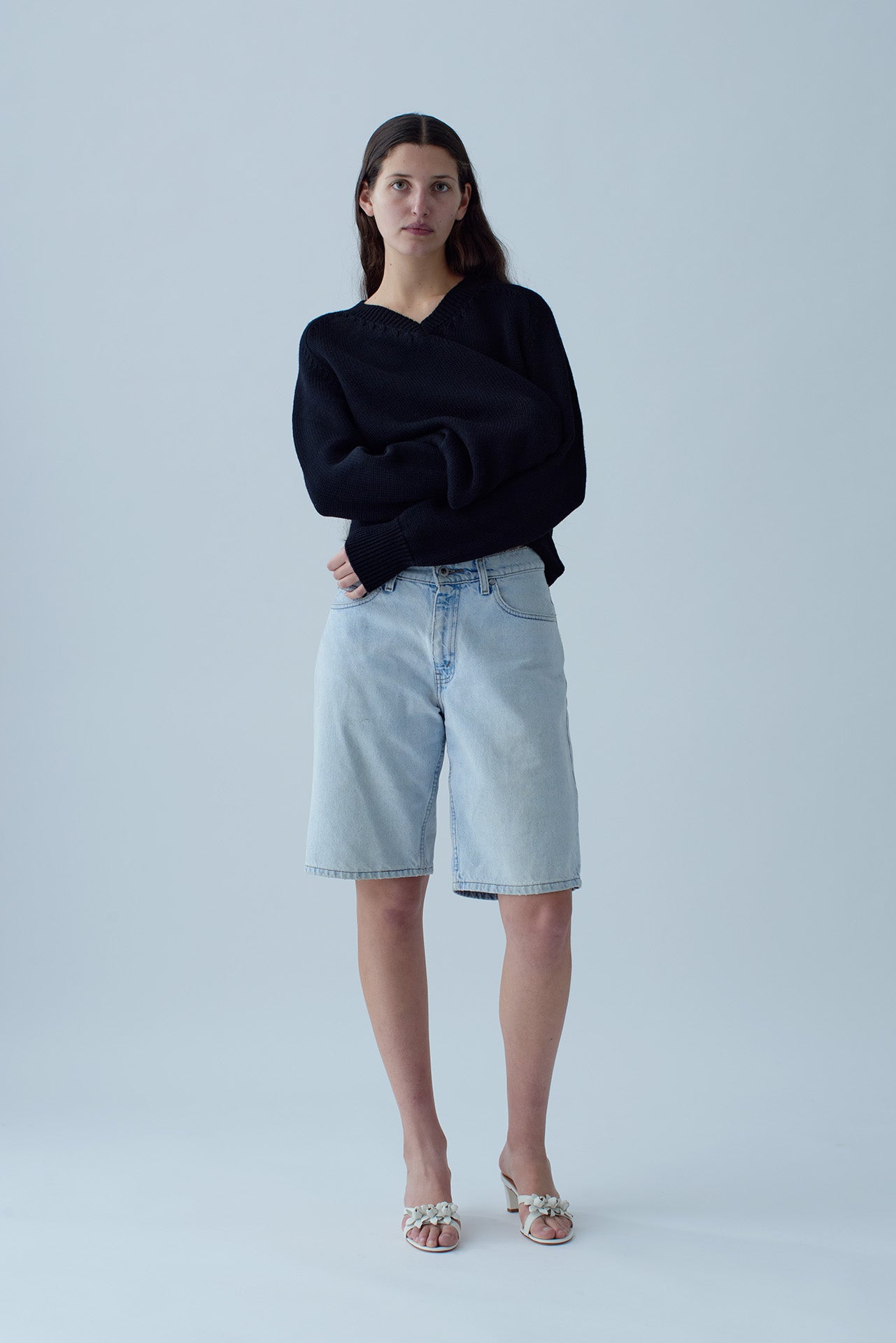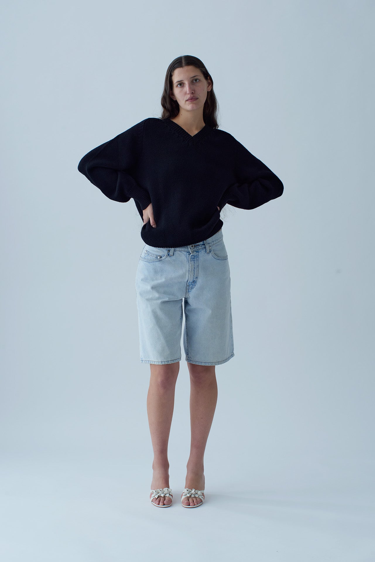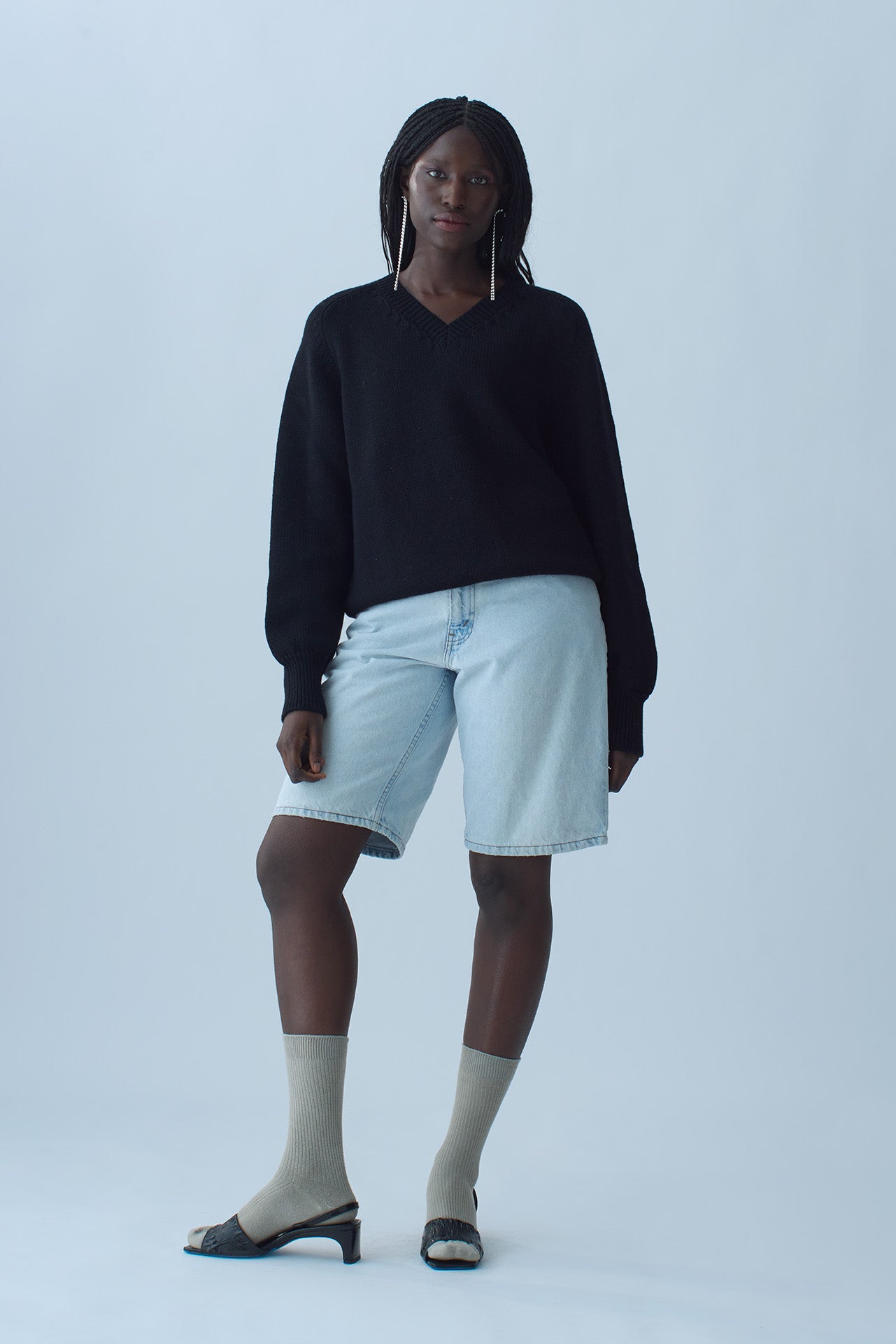 Our debut sweater, a unisex, one-size-fits-most oversized v-neck sweater in soft, plush 7GG Italian merino wool. Perfect layering piece.