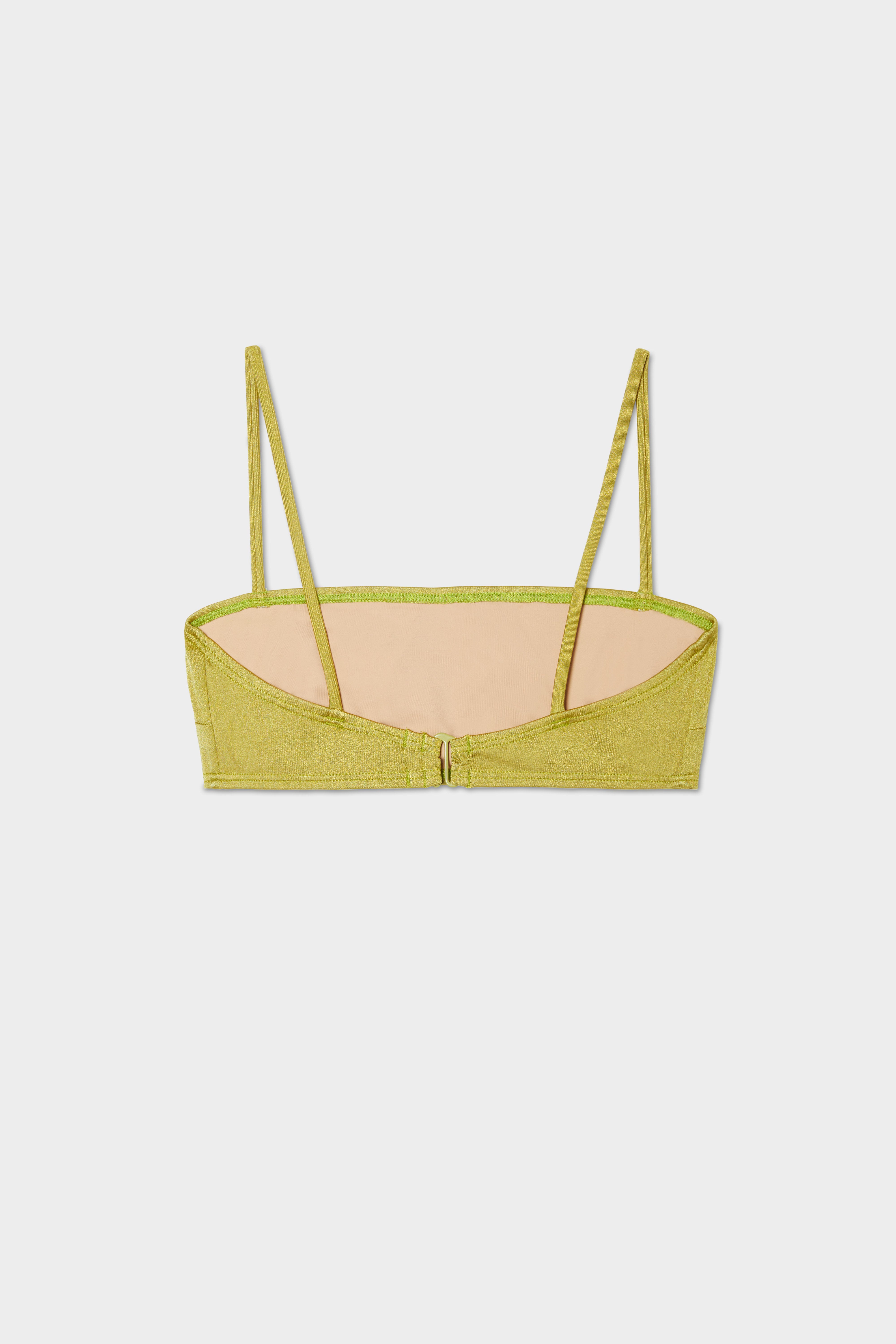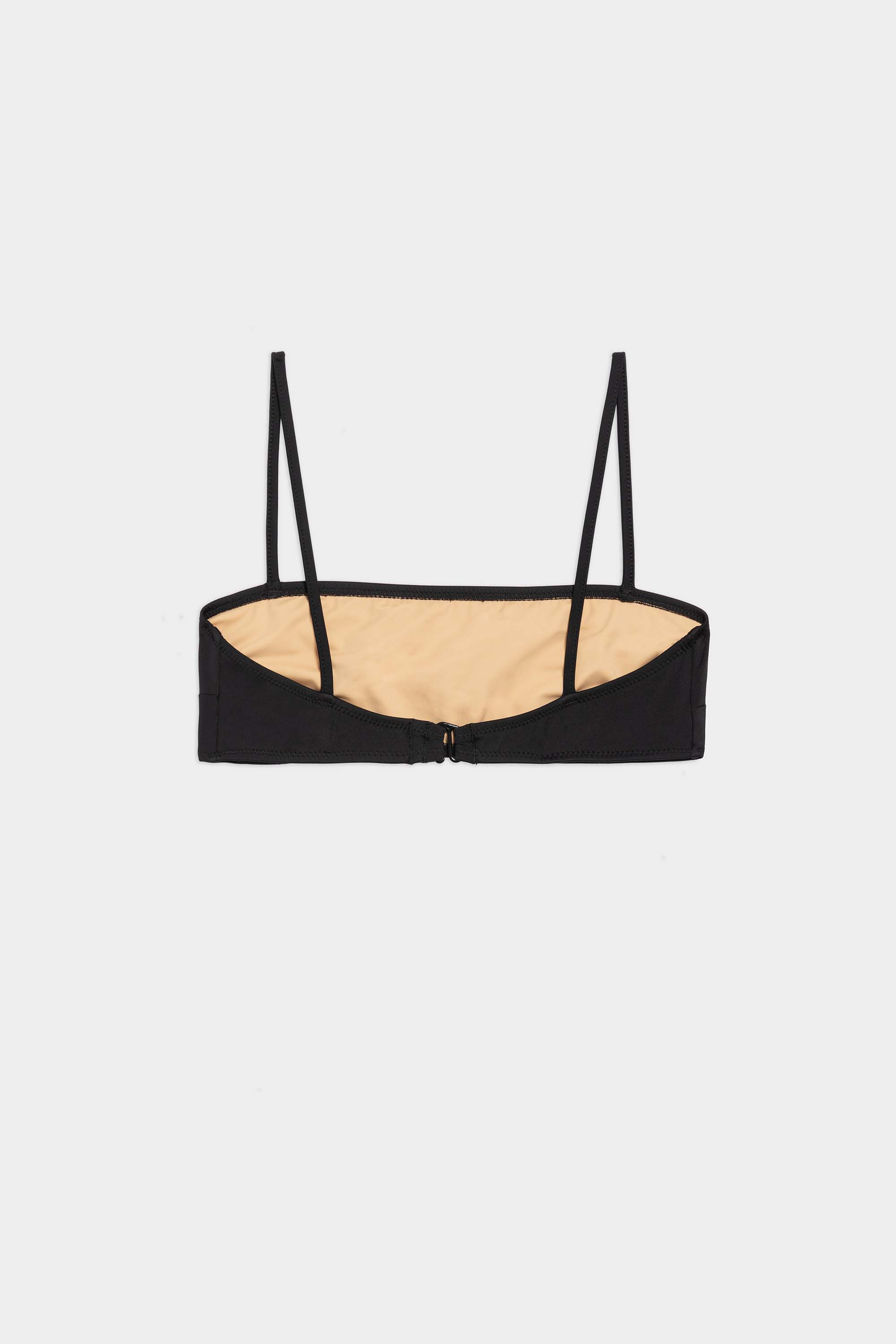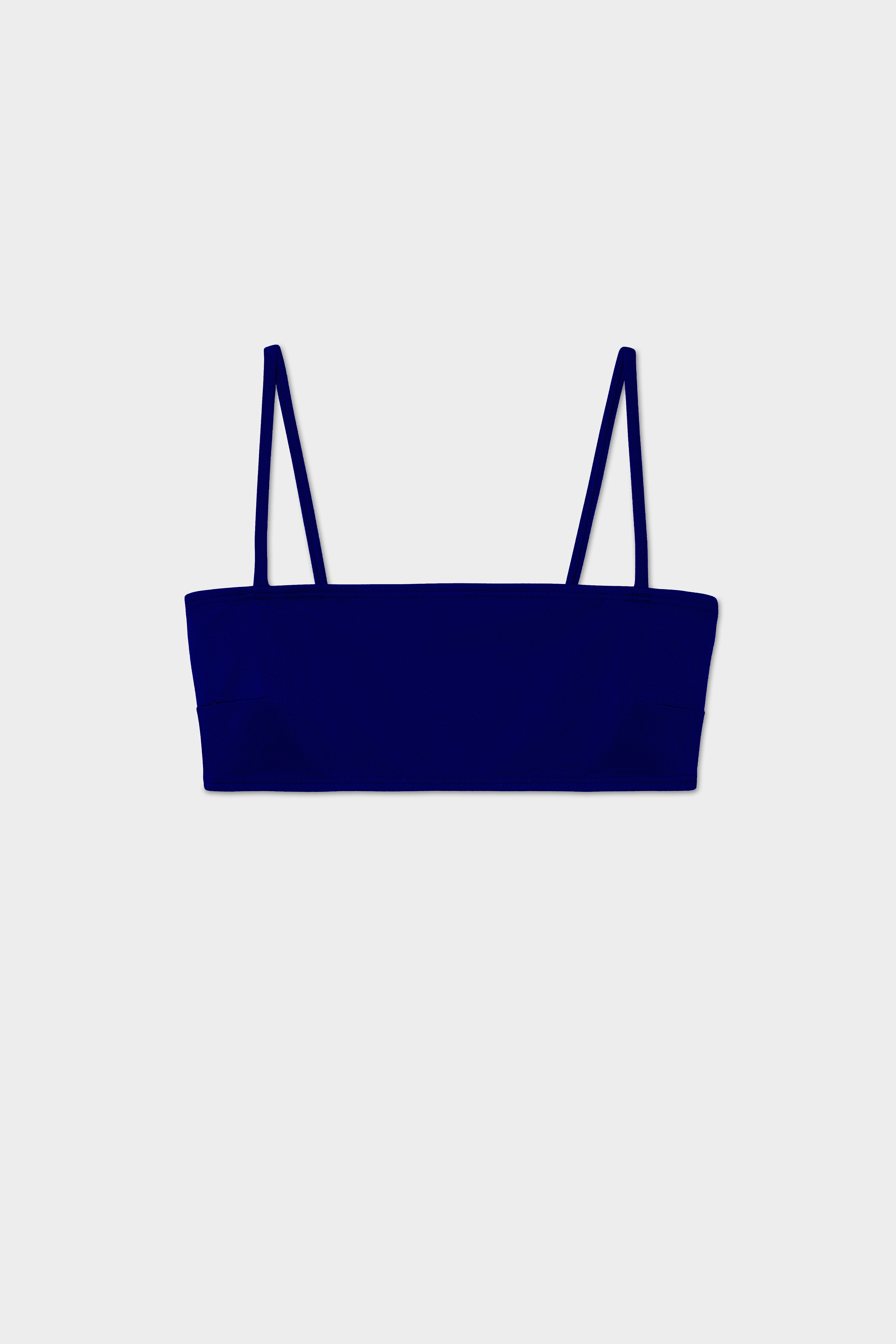 Straight neckline top with wide set straps and side seam darts for a versatile fit. Dyed to match hook closure for easy on and off.
