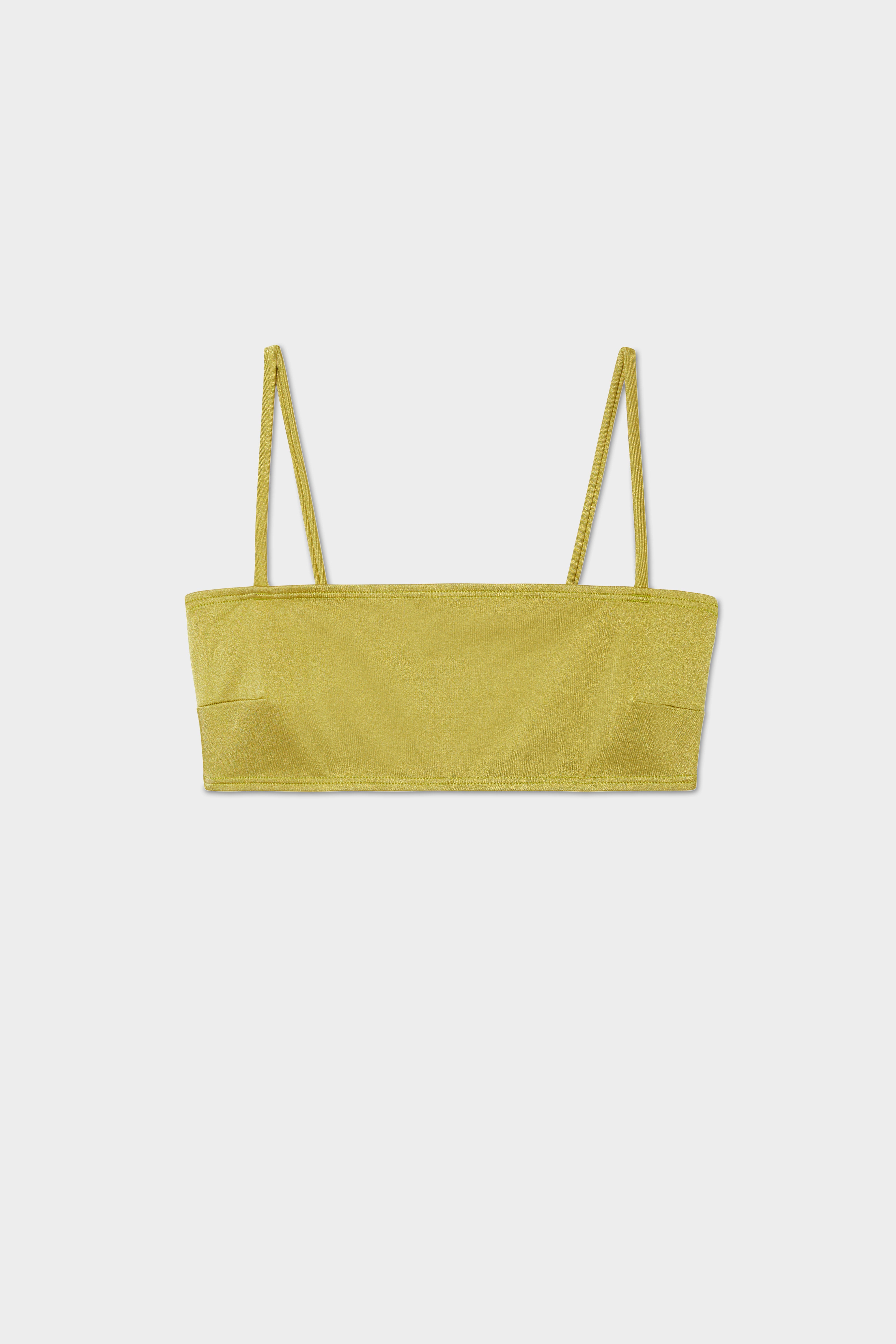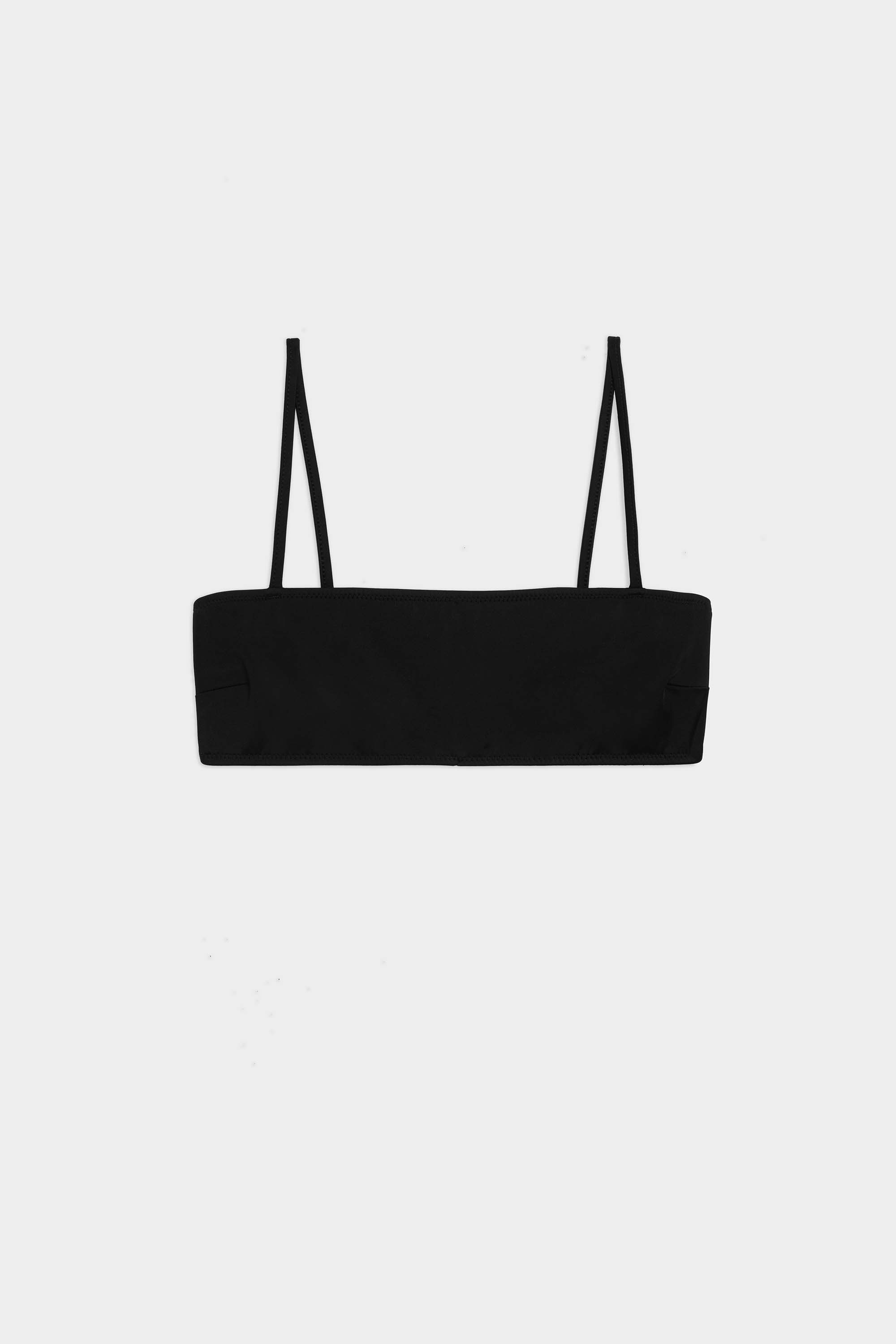 Straight neckline top with wide set straps and side seam darts for a versatile fit. Dyed to match hook closure for easy on and off.