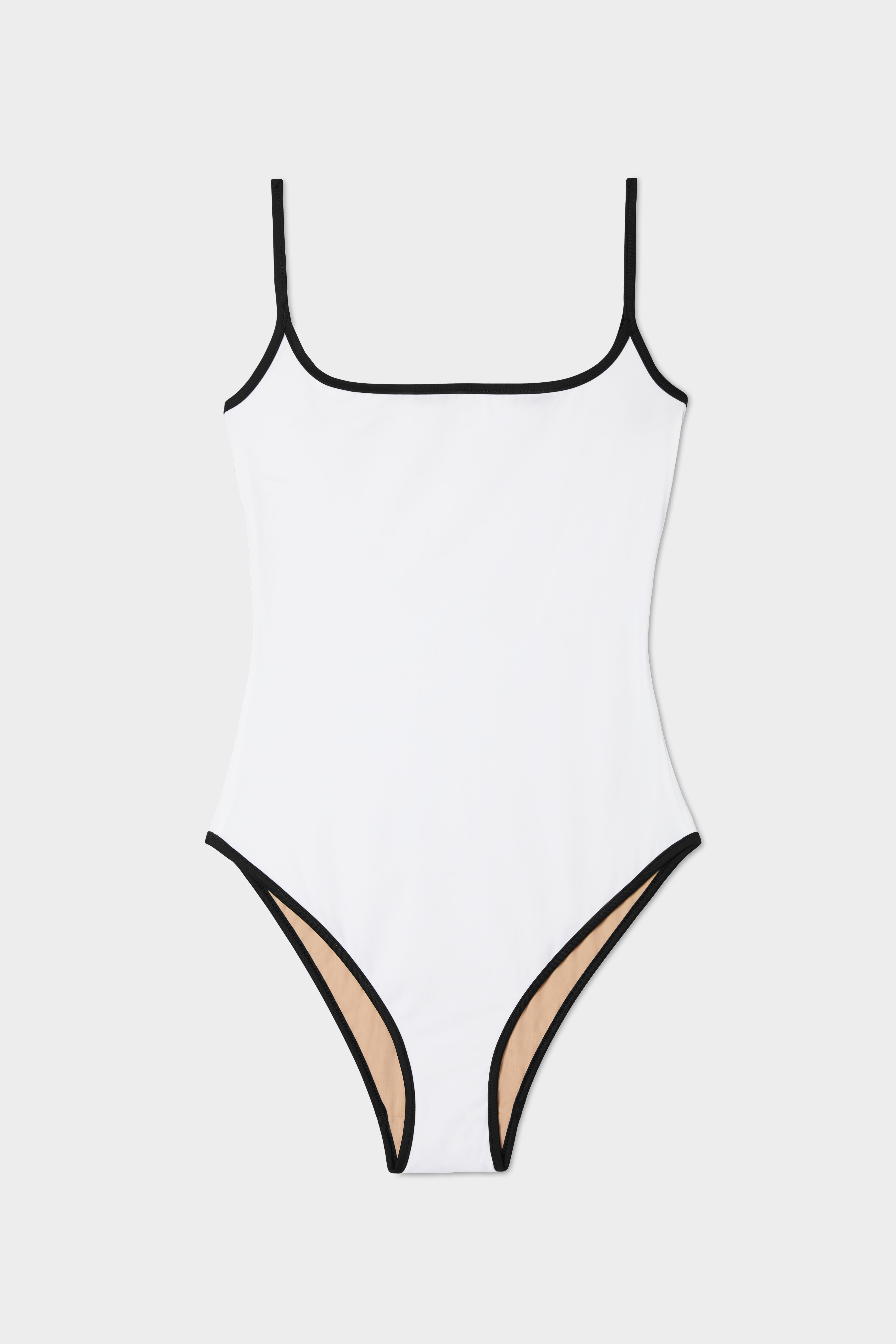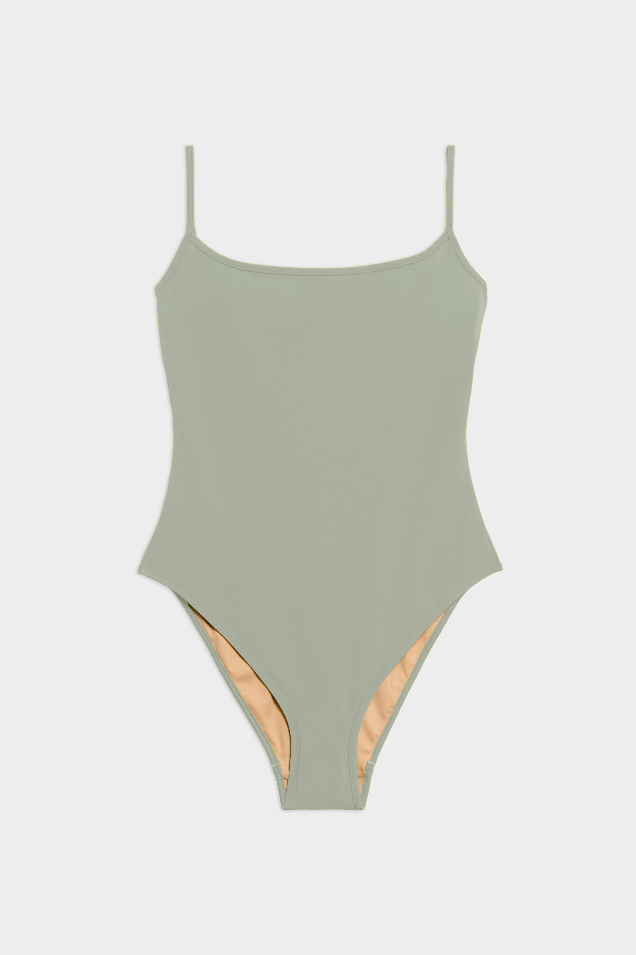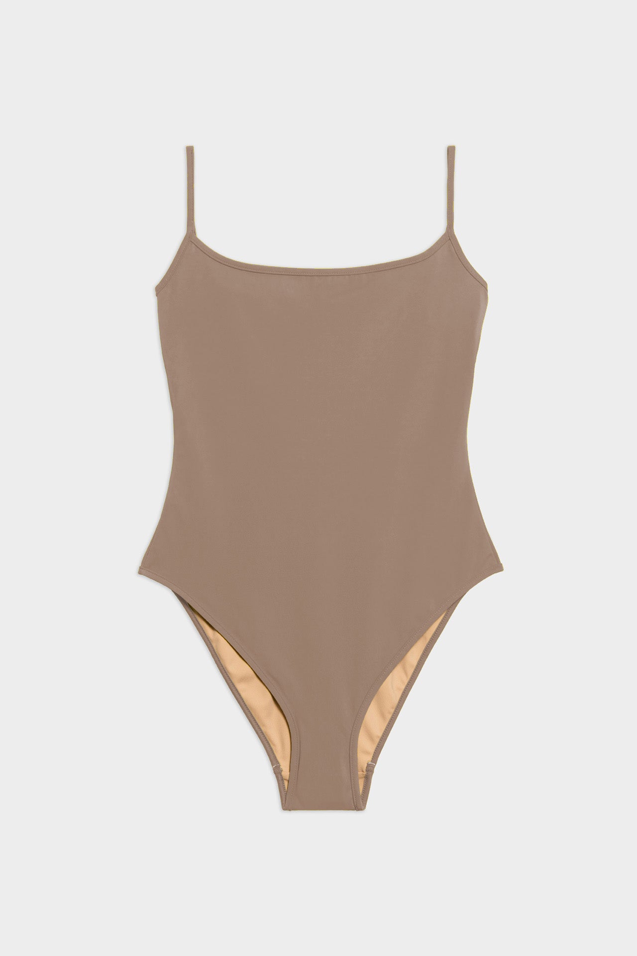 A simple maillot style, the Noodle Suit boasts a comfortable and flattering silhouette for a wide array of body types. With a slightly curved neckline and modestly scooped back, this suit is the perfect functional go-to. Constructed with a mid-height hip and fulflex rubber filled binding at the neckline and leg openings.