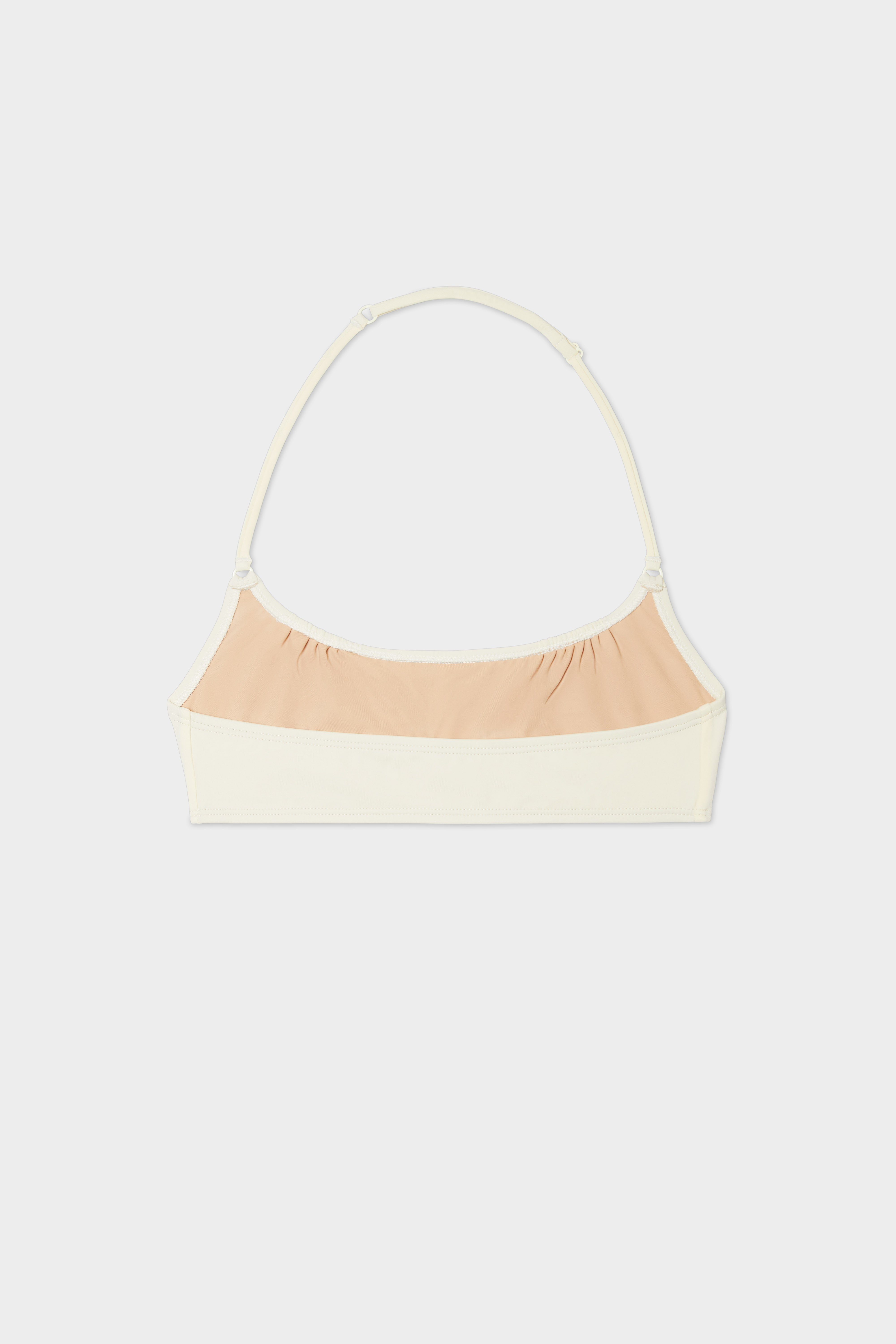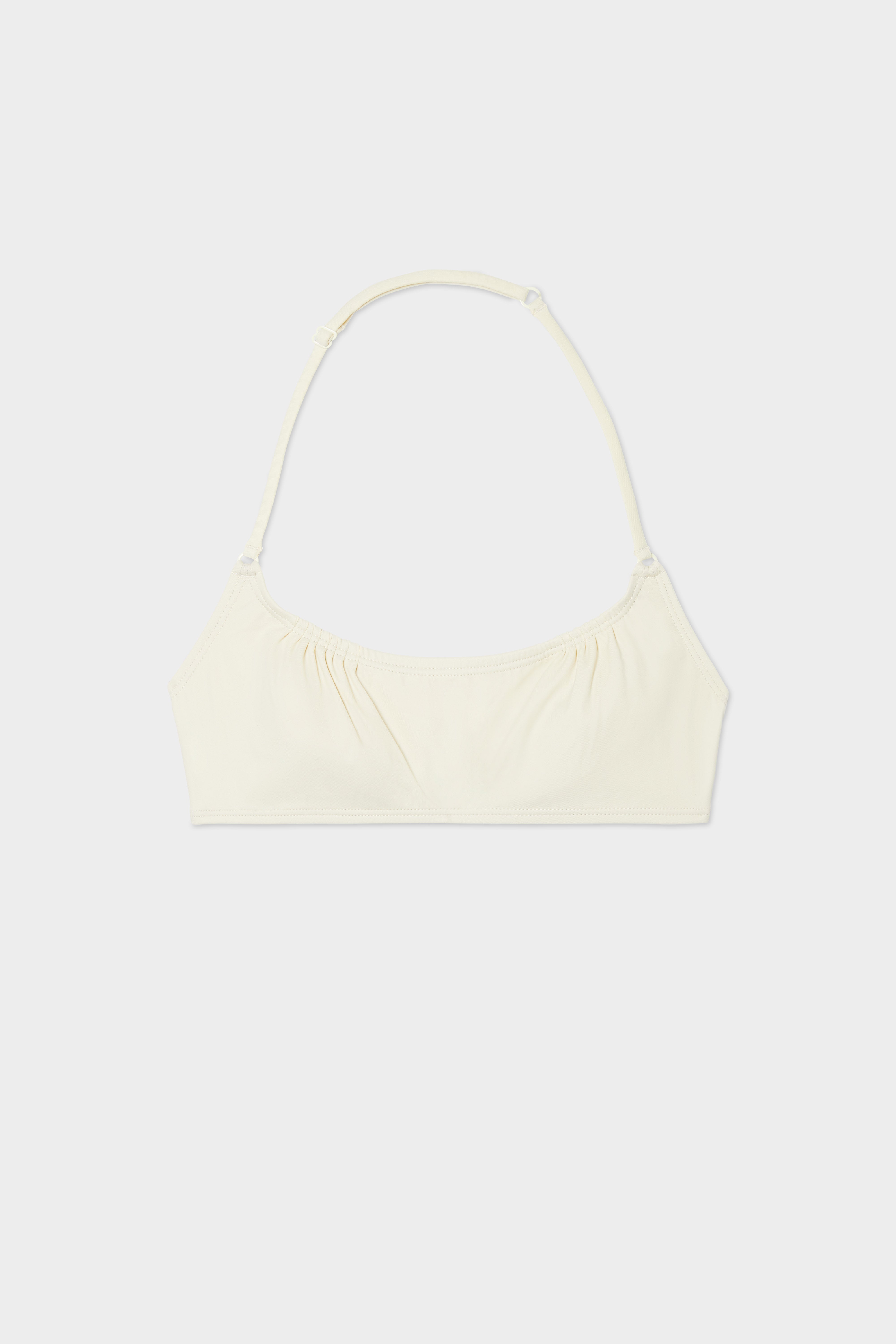 Halter top with shirring at top breast for a unique, feminine bust fit.