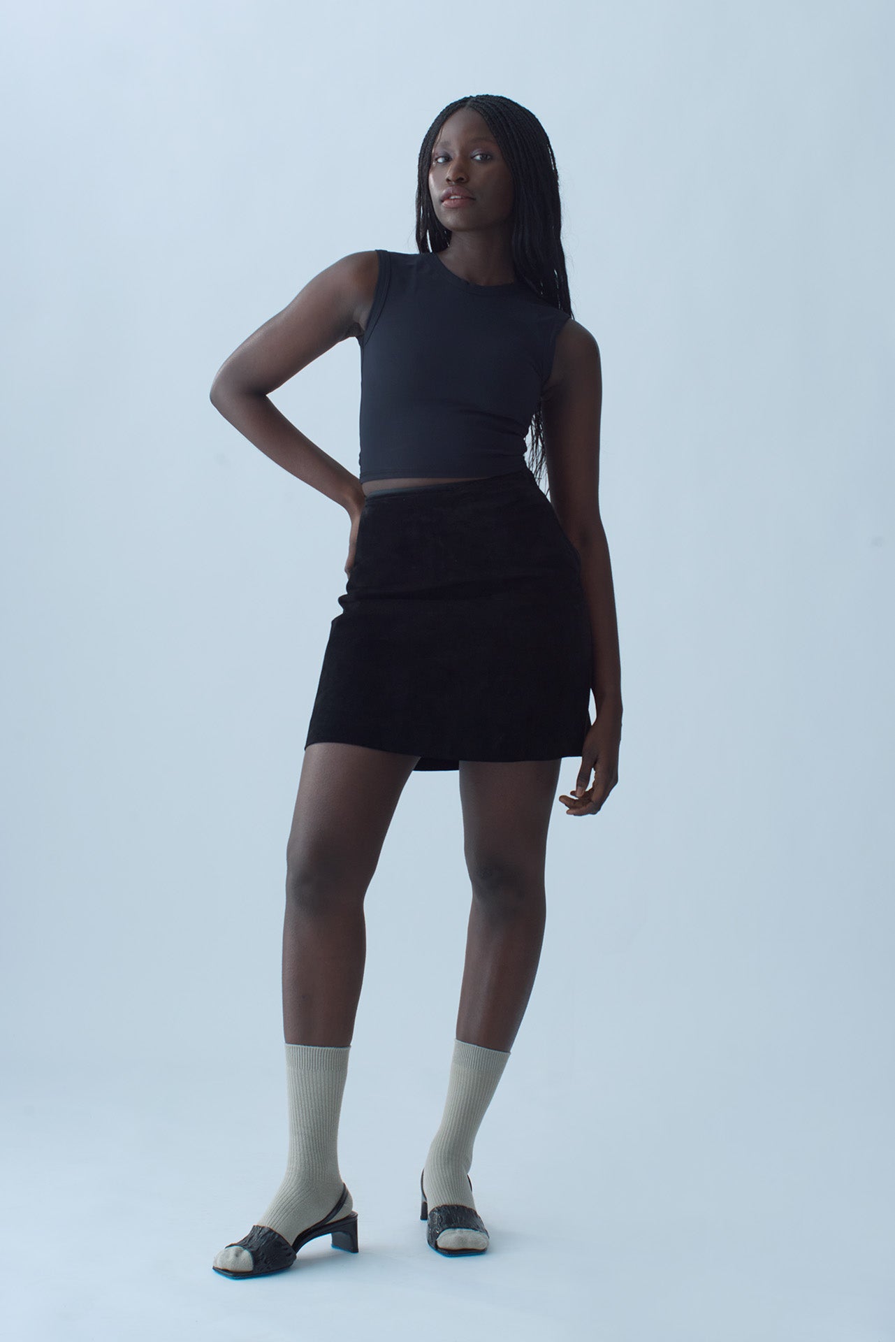 The Shell Swim Top is a crew neck tank style cut in our bonded jersey fabric that can easily be worn from land to sea to land.