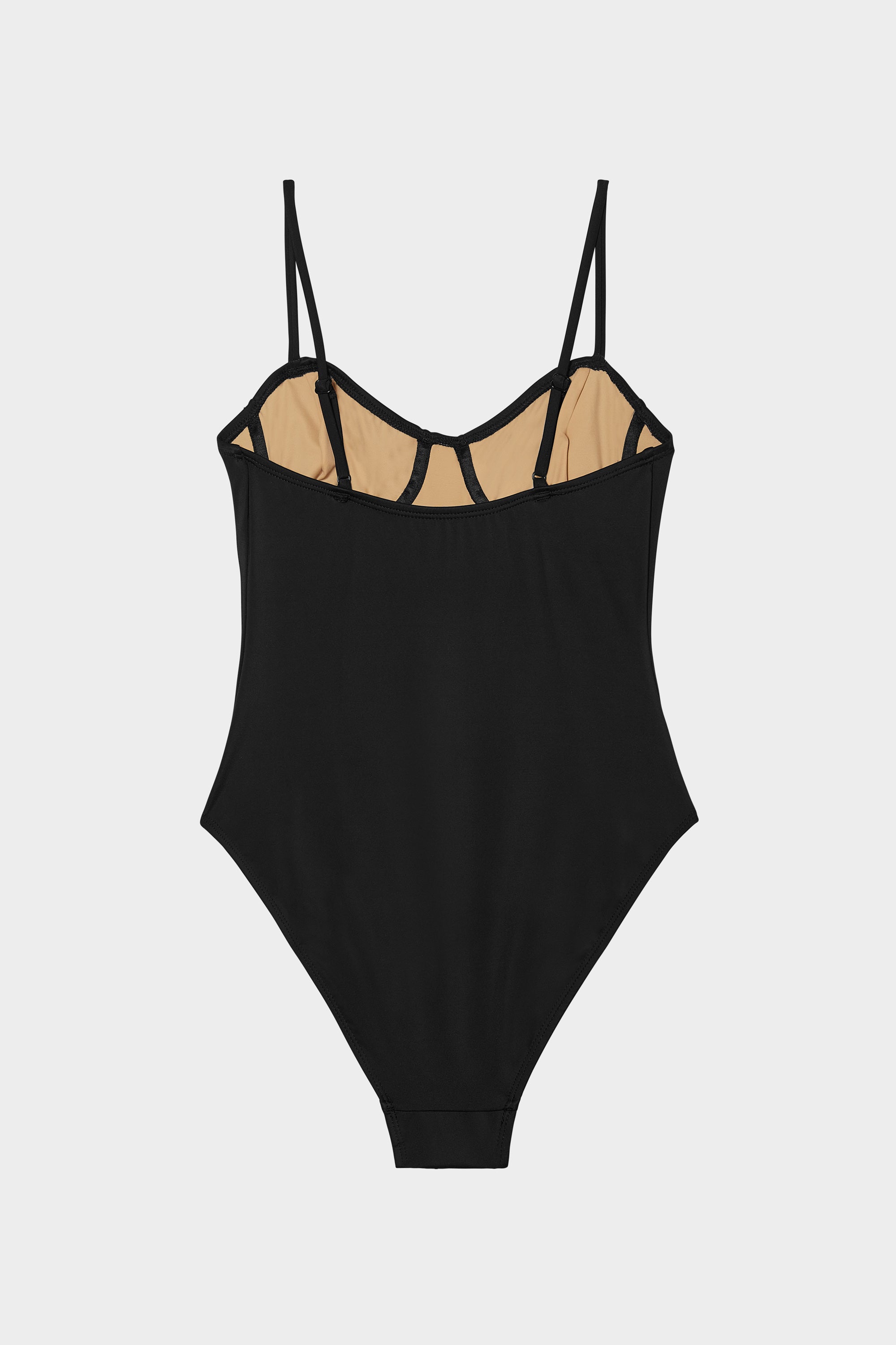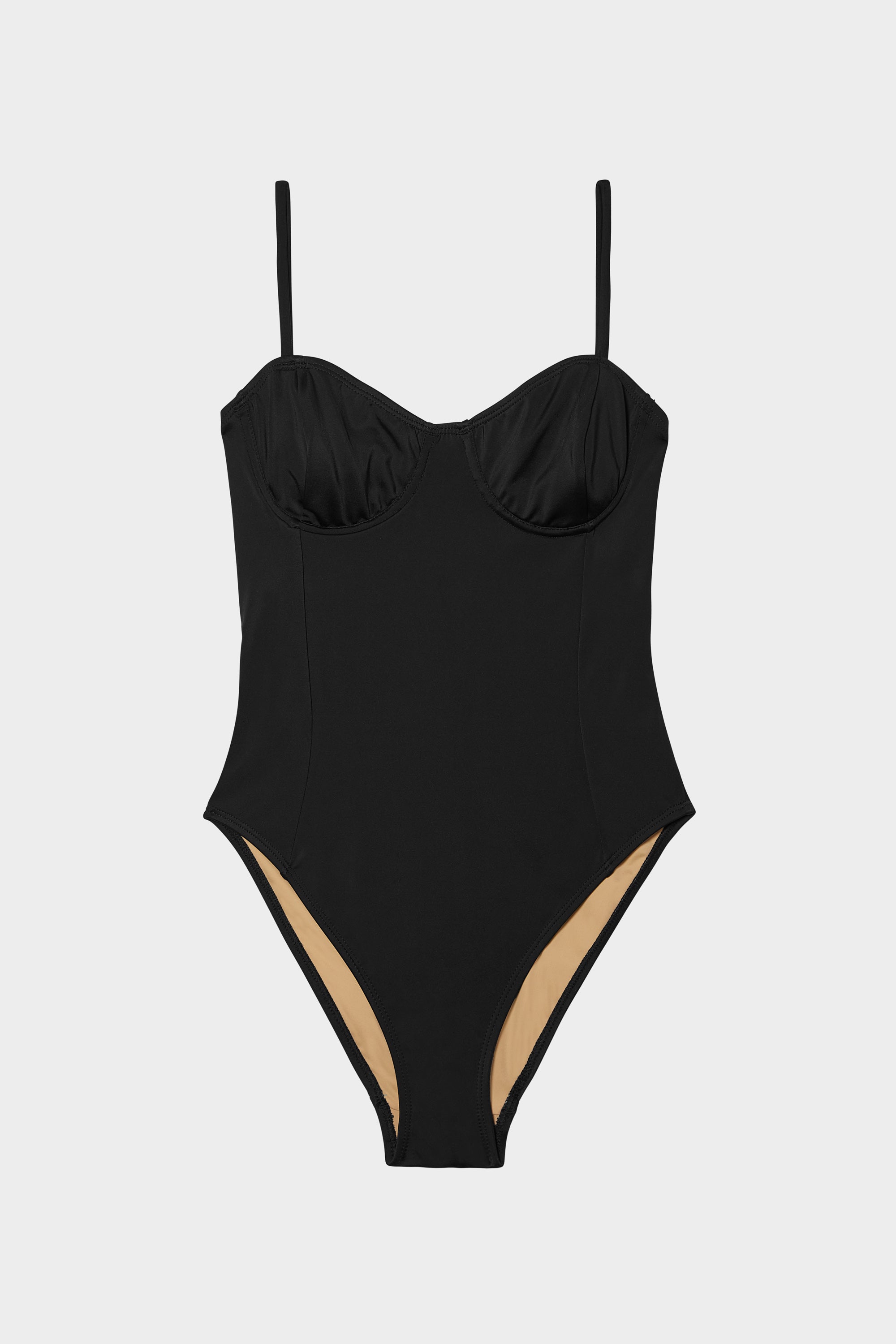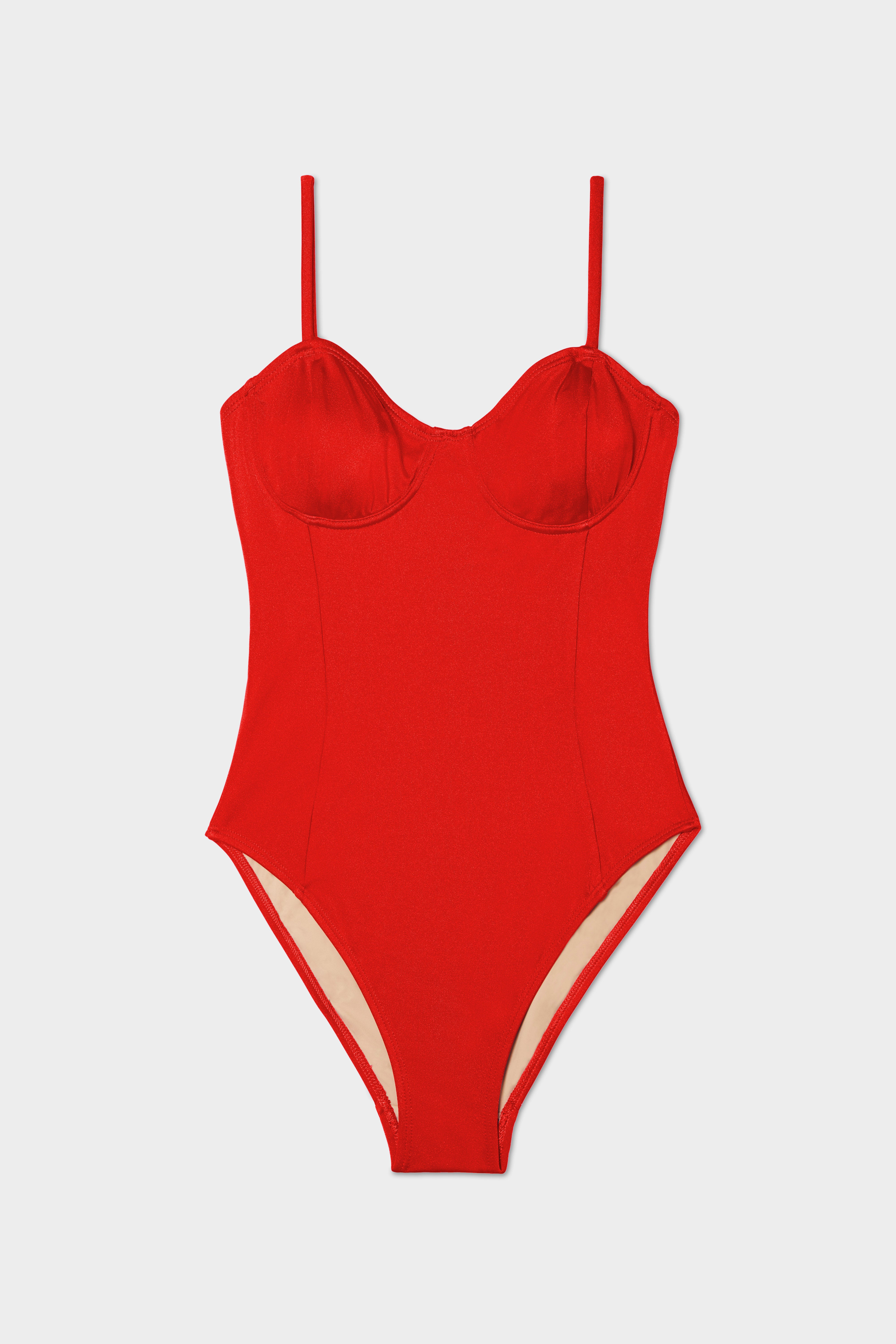 An underwire one piece with a flattering balconette neckline and mid rise leg. Adjustable straps make this a functional suit adaptable to many bodies.