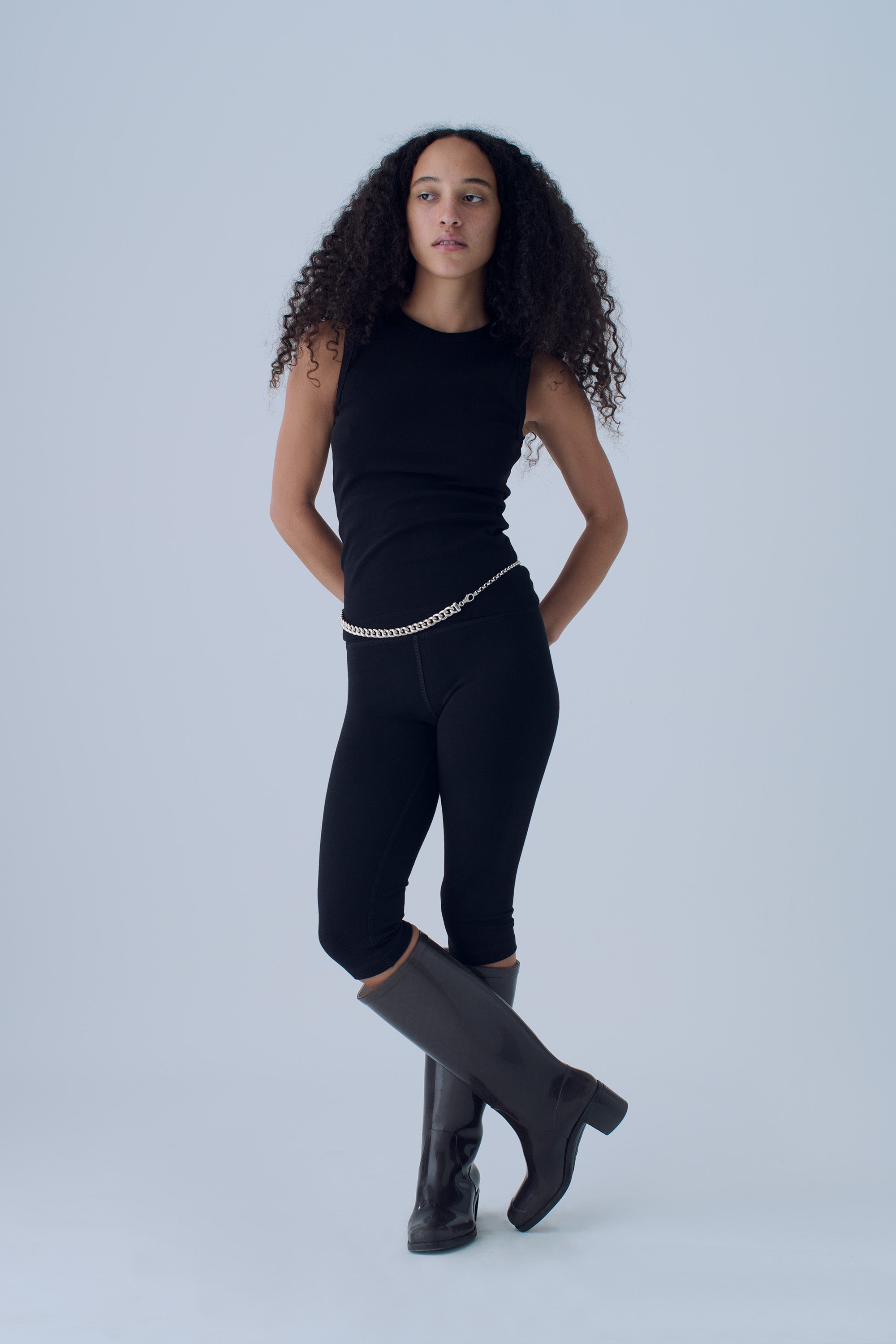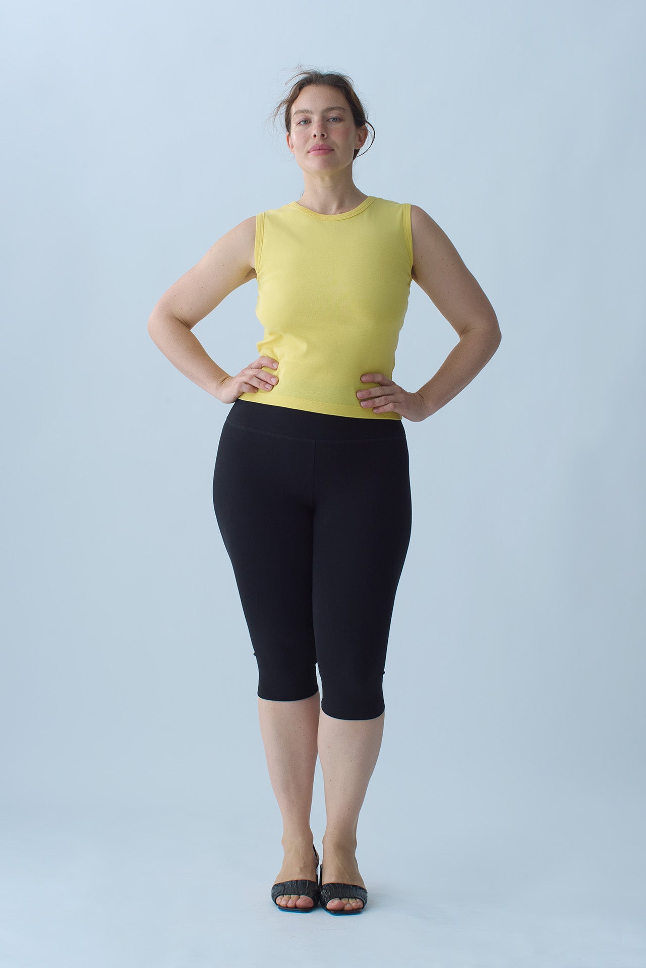The Organic Cotton Capri Legging is cut, sewn and dyed in New York City.
