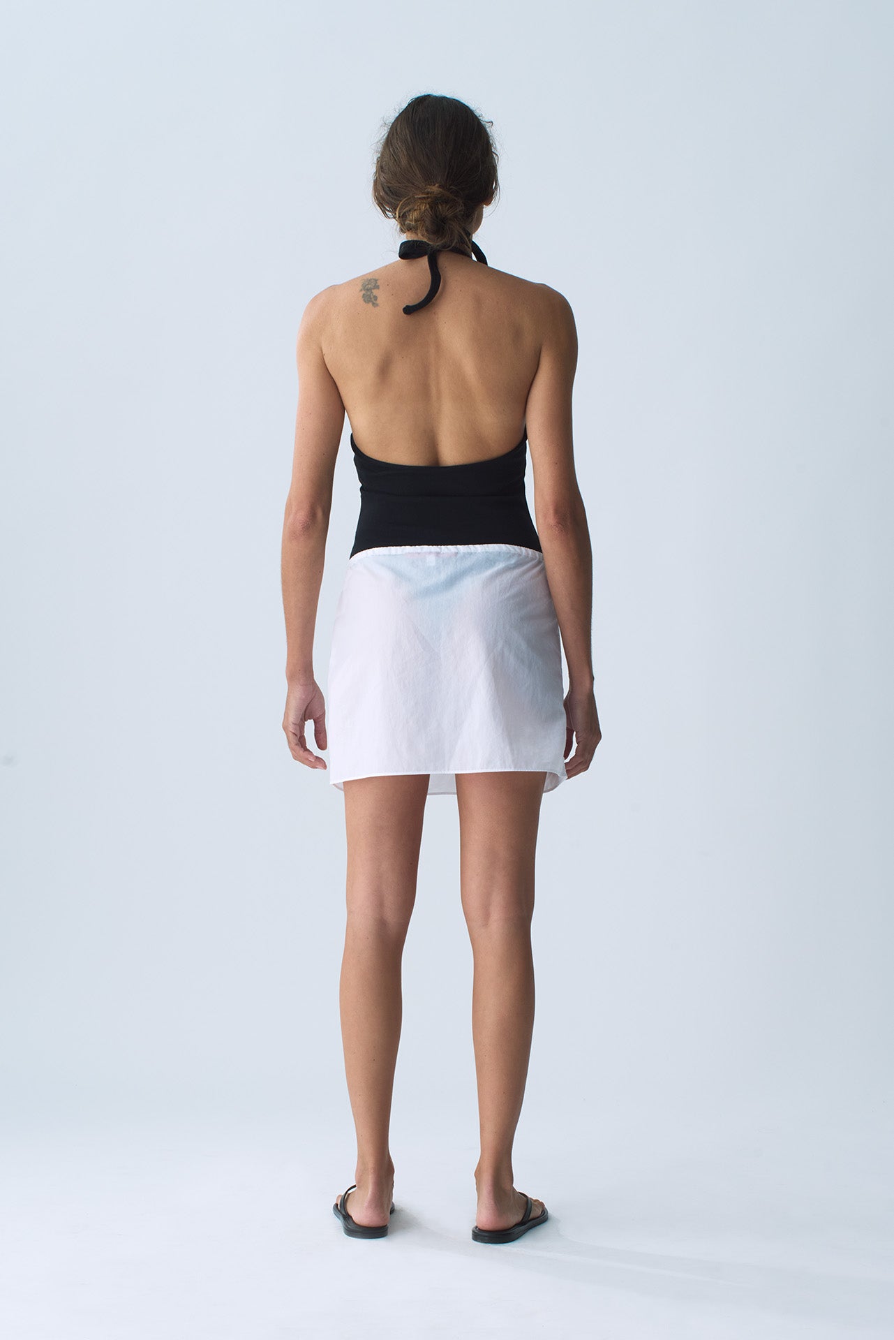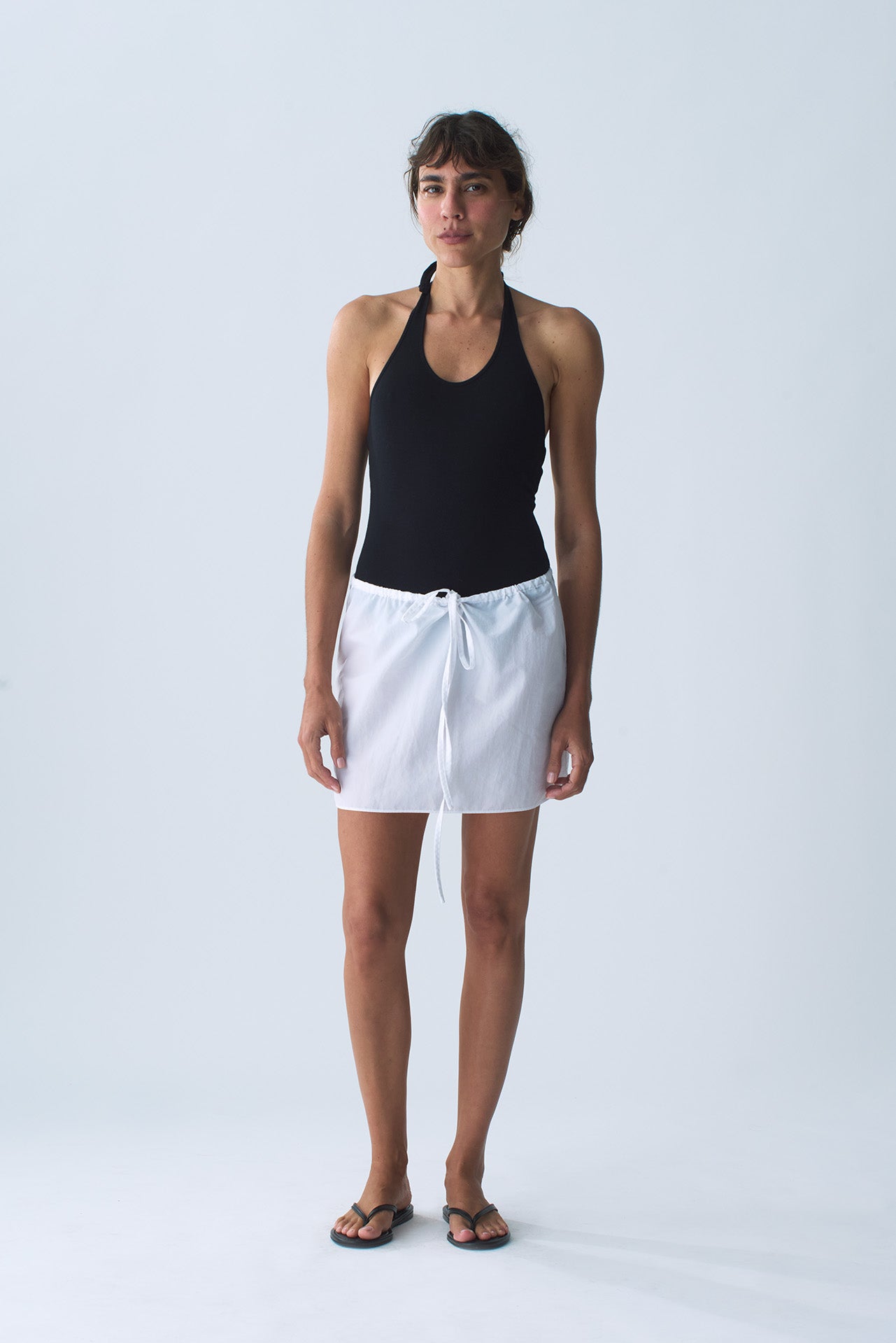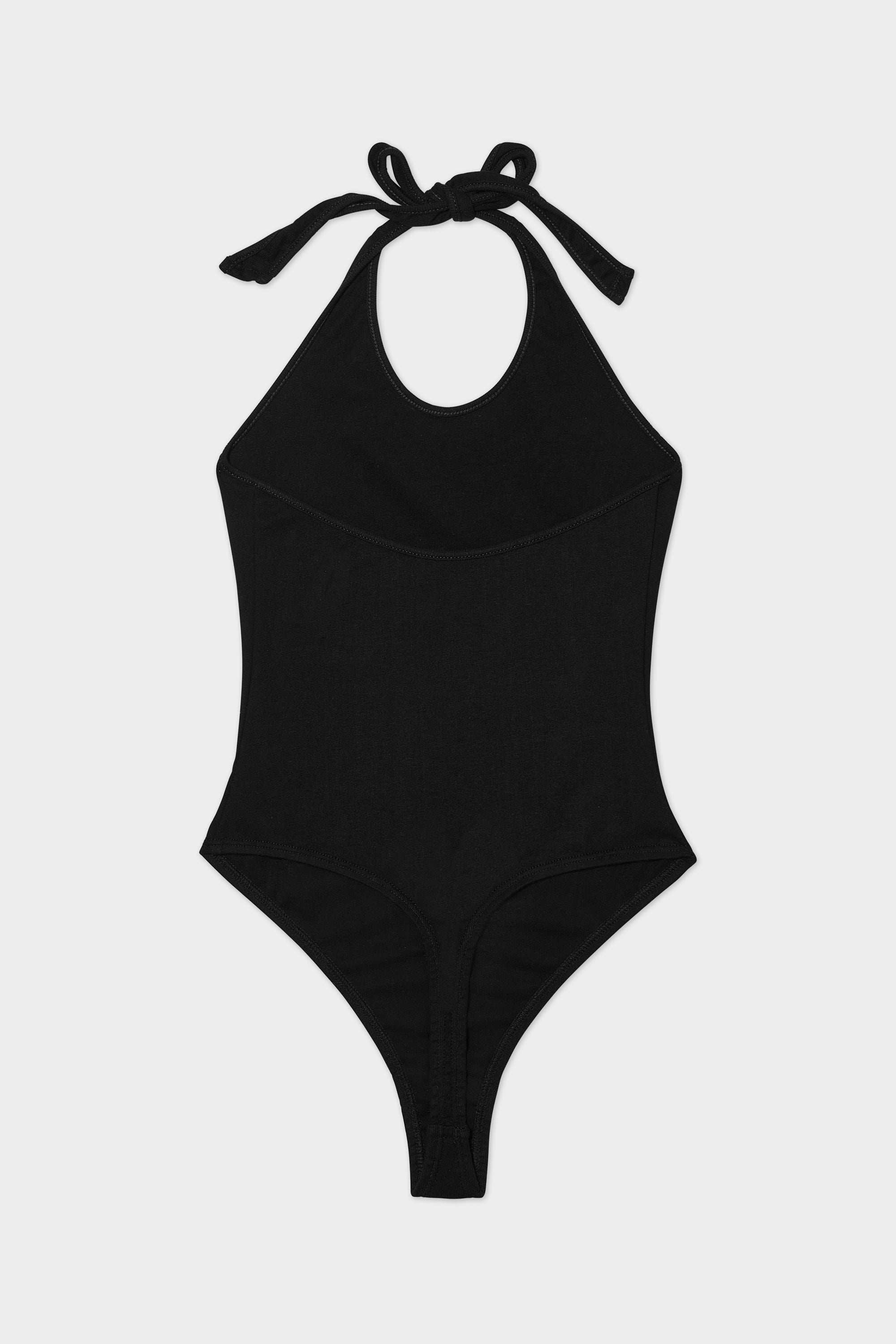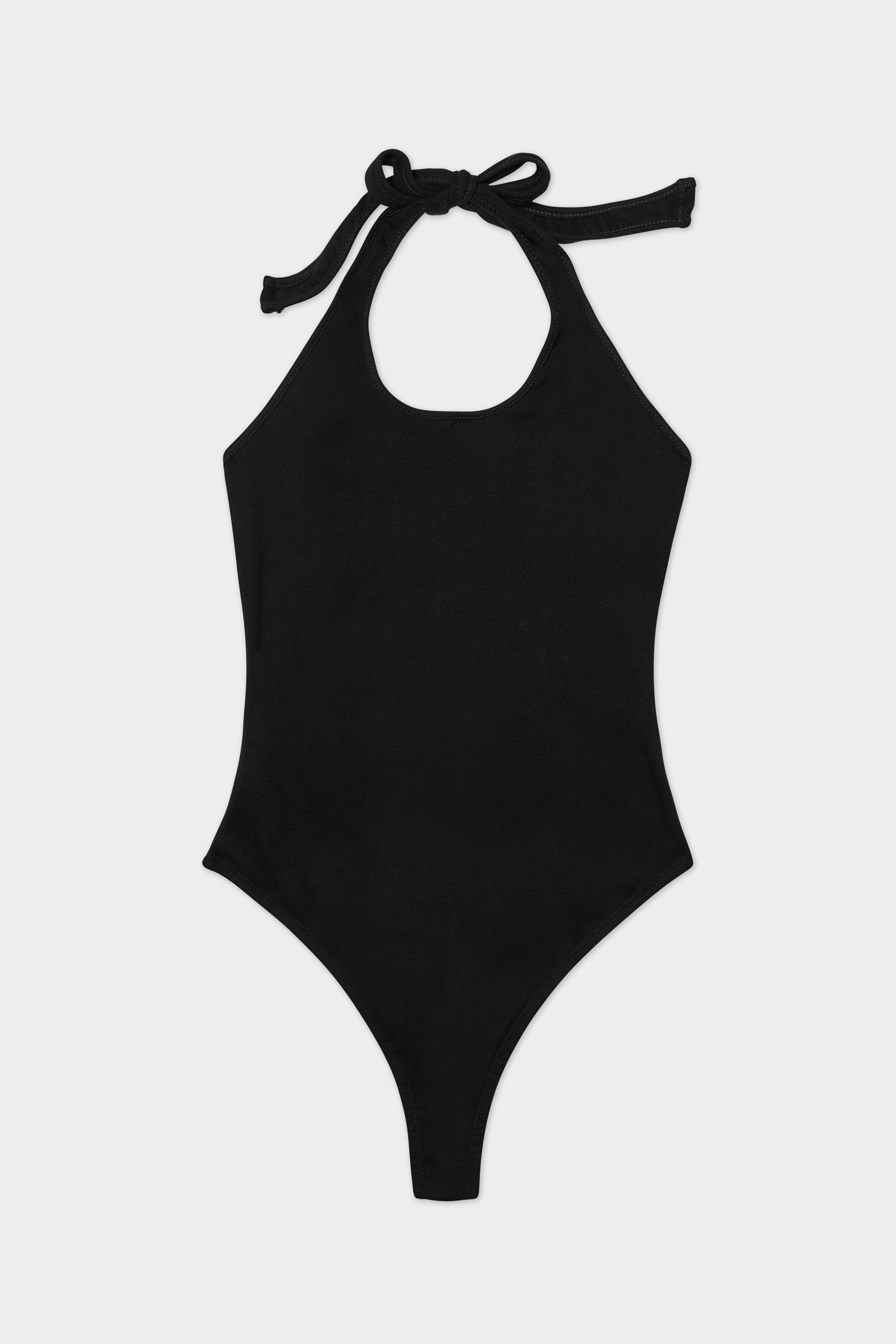 A halter thong bodysuit, cut in our organic cotton baby rib for ultra comfort.