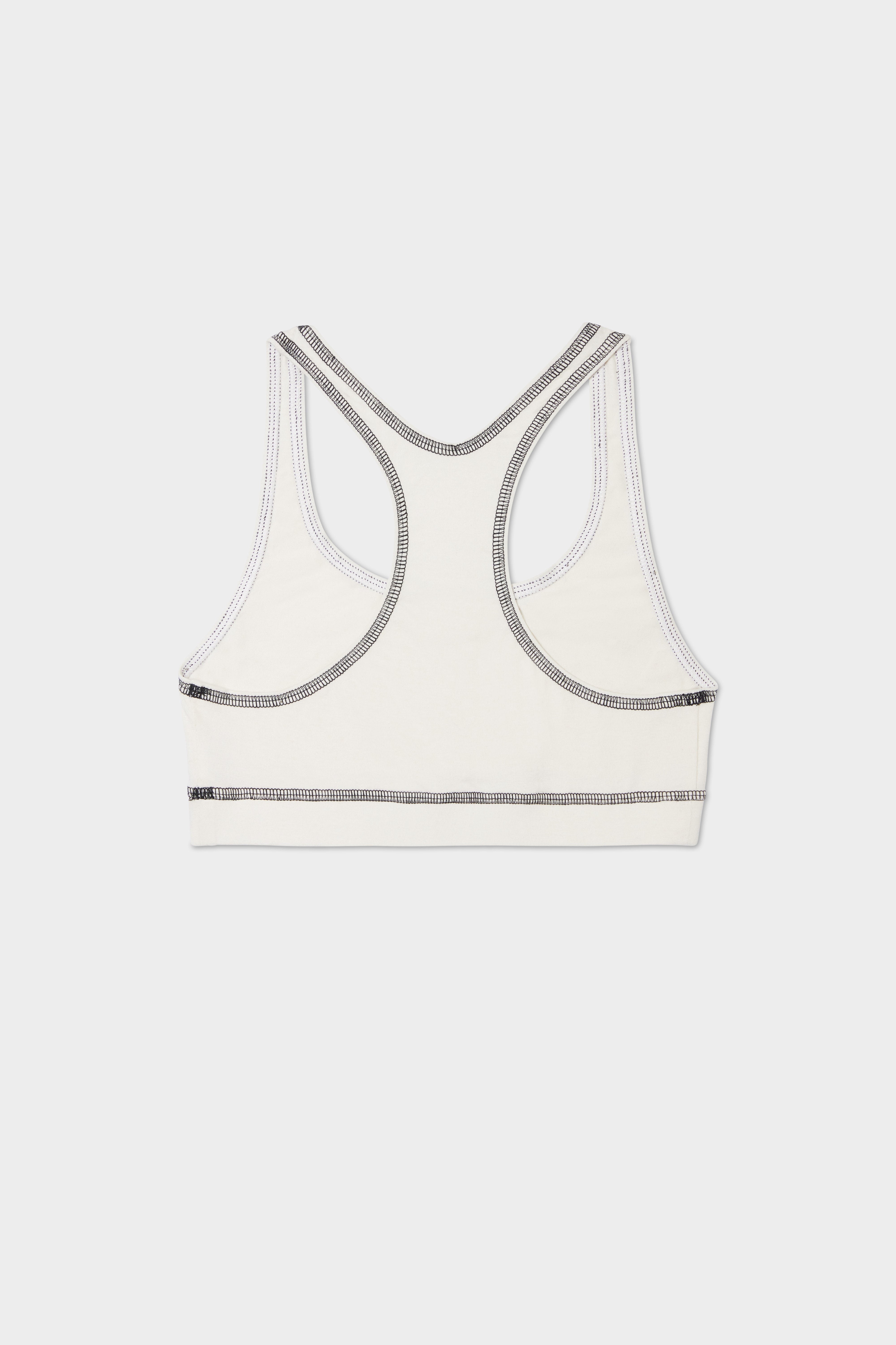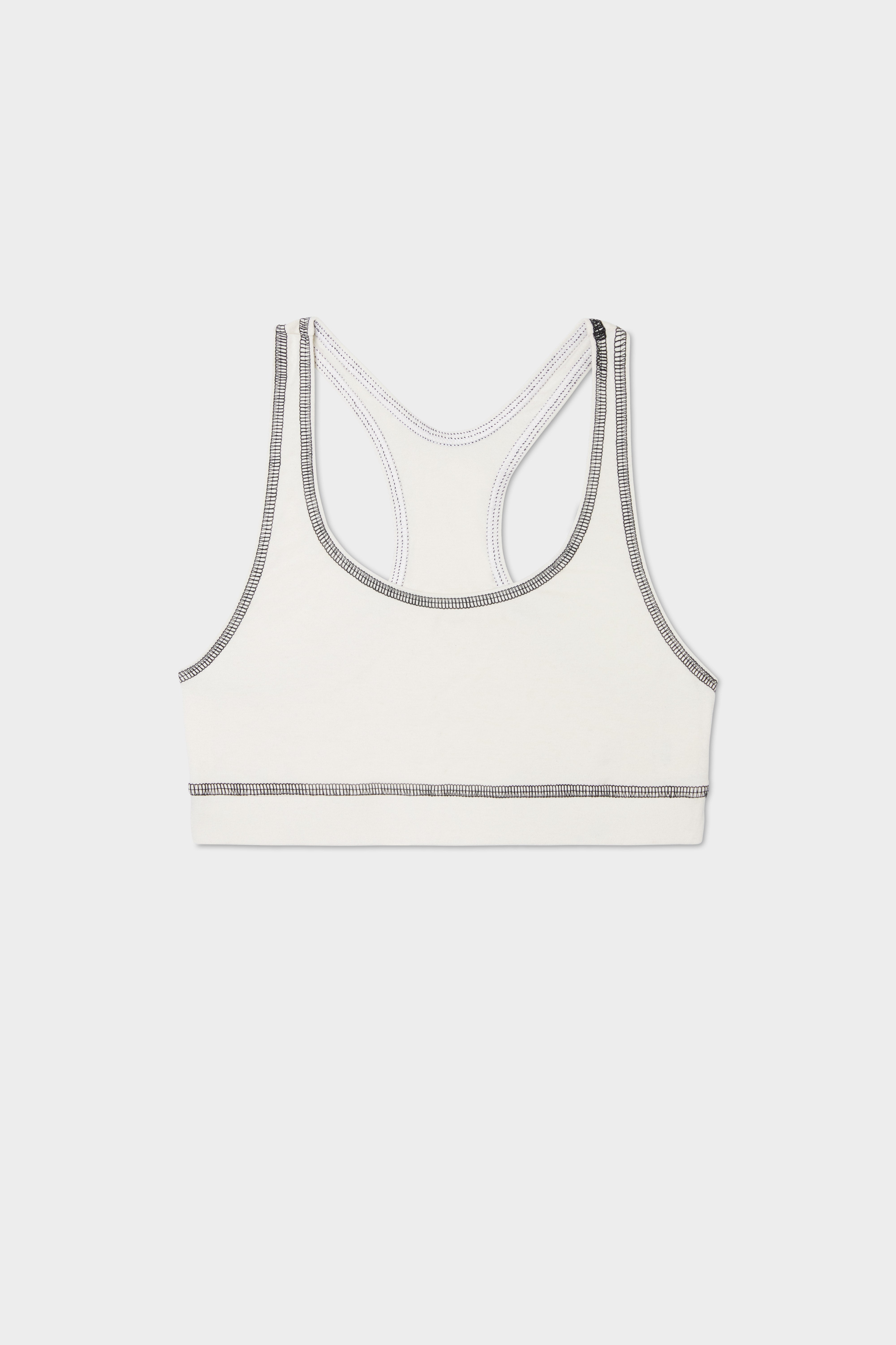 Our Organic Cotton Sport Bra provides full coverage, comfort and support for all activities. Finished with a racer back and 1 1/4 inch encased elastic hem.